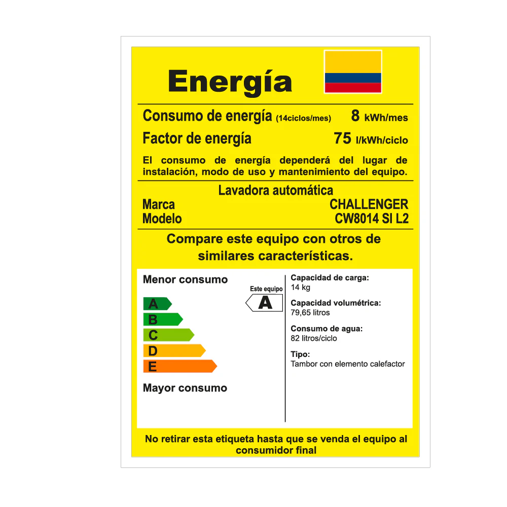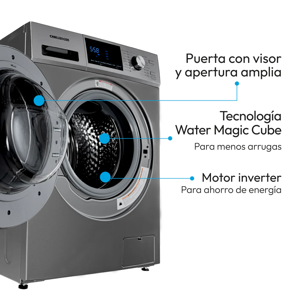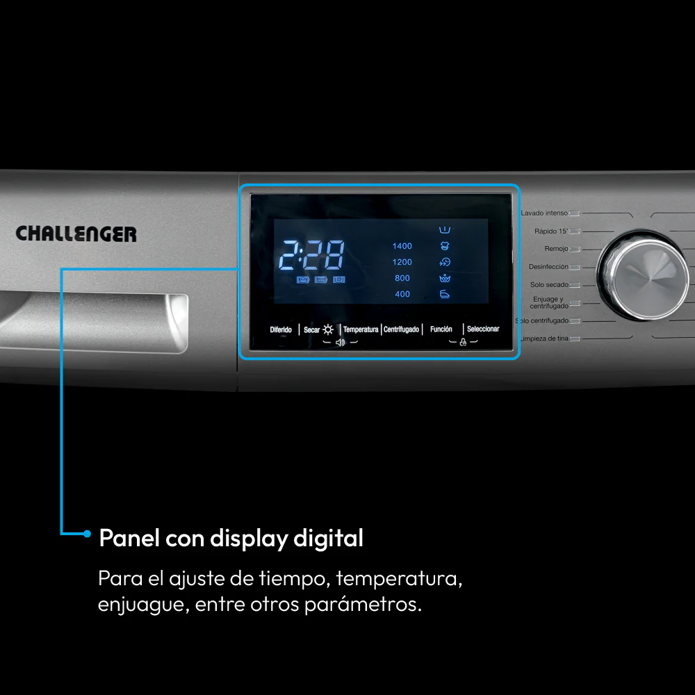 La lavadora y secadora automática Challenger CW 8014 SI es la solución ideal para quienes buscan eficiencia y comodidad en el lavado de su ropa. Con una capacidad de 14 kg, permite manejar cargas grandes, ideal para familias o quienes realizan lavados frecuentes. Su tecnología inverter garantiza un funcionamiento silencioso y un ahorro energético excepcional, con una calificación de eficiencia A.