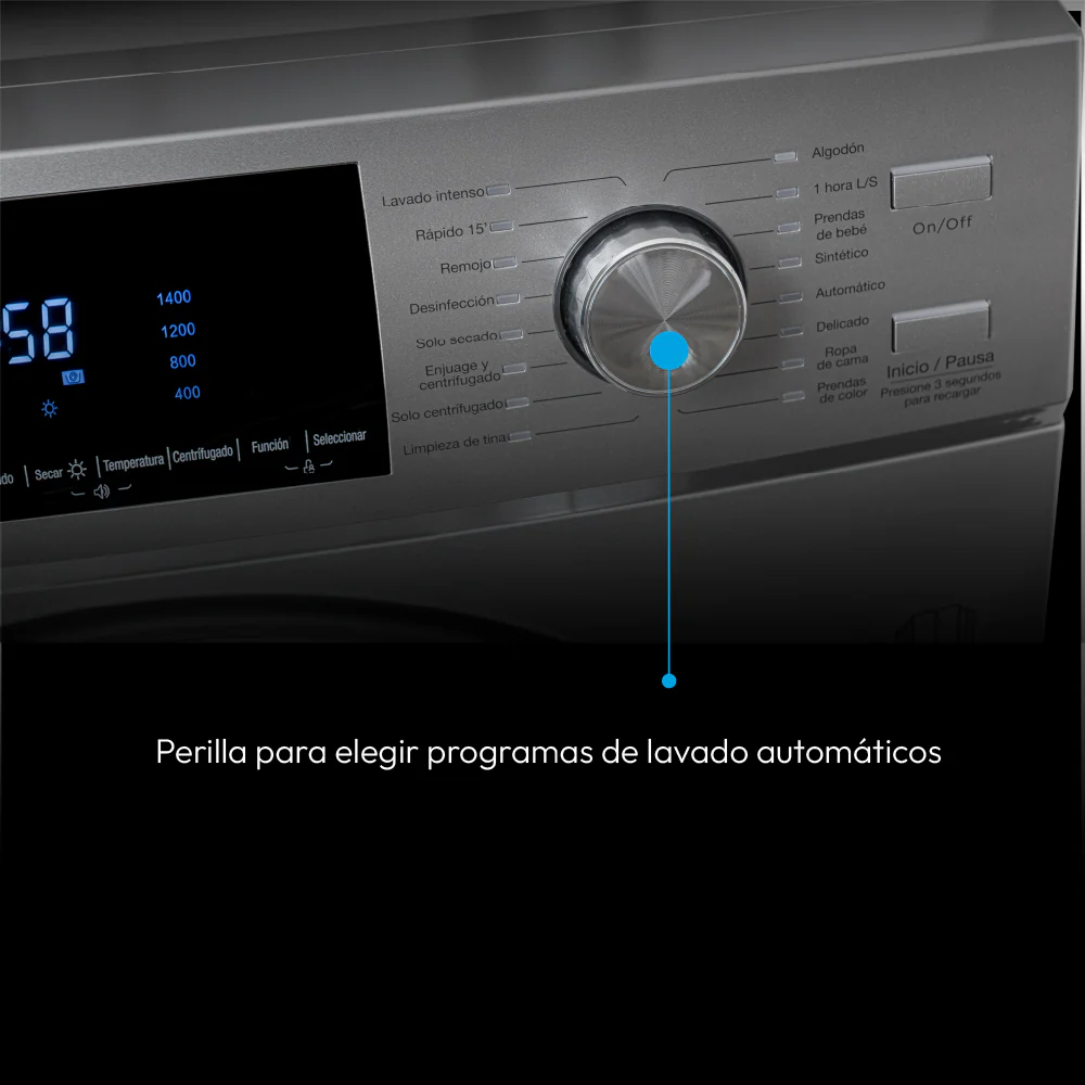 Linea: Lavado / Acabado: Silver / Volumen del empaque: 0,43m3 / Clasificación energética: A / Alimentación: 110V – 60 Hz / Potencia nominal: 1100W / Potencia de secado: 1100 W / Capacidad carga lavado: 14 Kg (30,8 lb ) / Capacidad carga secado: 8 Kg (17,63 lb ) / Velocidad de Centrifugado: 600/1400 RPM / Tipo de Carga: Frontal / Corriente máxima: 10 A / Presión de agua: 0,5 bar-10 bar (0,05 Mpa – 1,0 Mpa) / Número de programas: 16 / Display: LED Digital / Botones táctiles / Filtro recolector: SI / Tambor en acero inoxidable: SI / Entrada de agua: Fría / Bloqueo para niños: SI / Dispensador detergente: Si / Tipo de manejo: Automática / Apagado automático: Si / Calefactor interno: Si / Bloqueo de puerta: Electromagnético / Motor Inverter: Si .