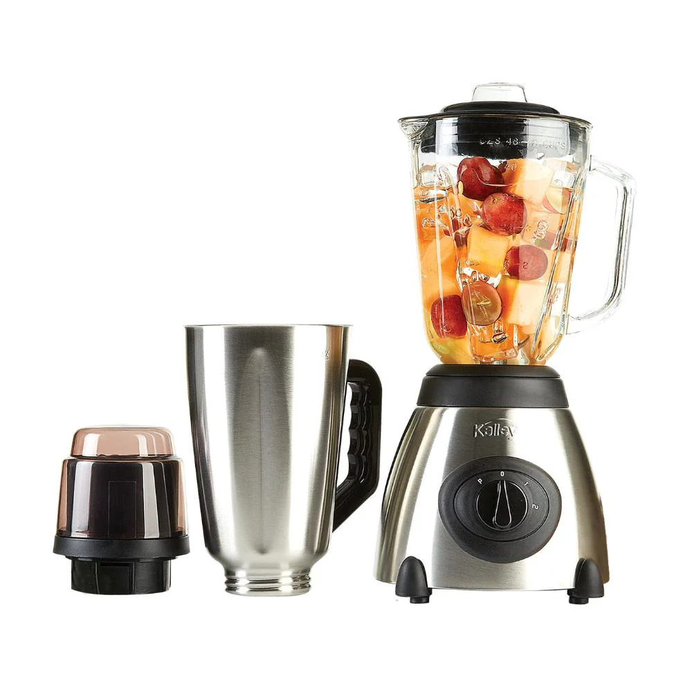 Licuadora Kalley K-B15MAV cuenta con 500W de potencia para mayor eficiencia para la preparación de tus alimentos. Vaso con capacidad de 1.5Litros para que puedas preparar lo que mas te gusta y 2 velocidad más función pulso para licuar con mayor precisión.