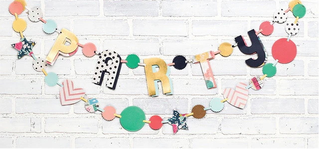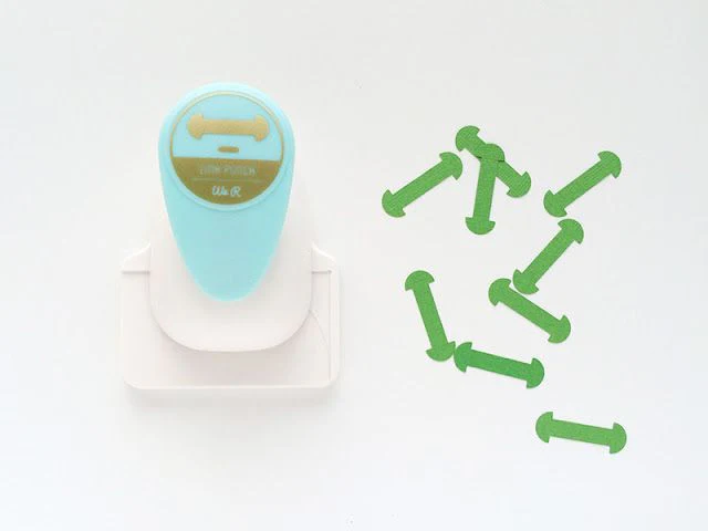 Perforadora de papel o cartulina delgada. Úsalo para unir cualquier forma (figuras o letras) y crea un banner, banderín o cadeneta, sin la necesidad de utilizar adhesivo o listones.