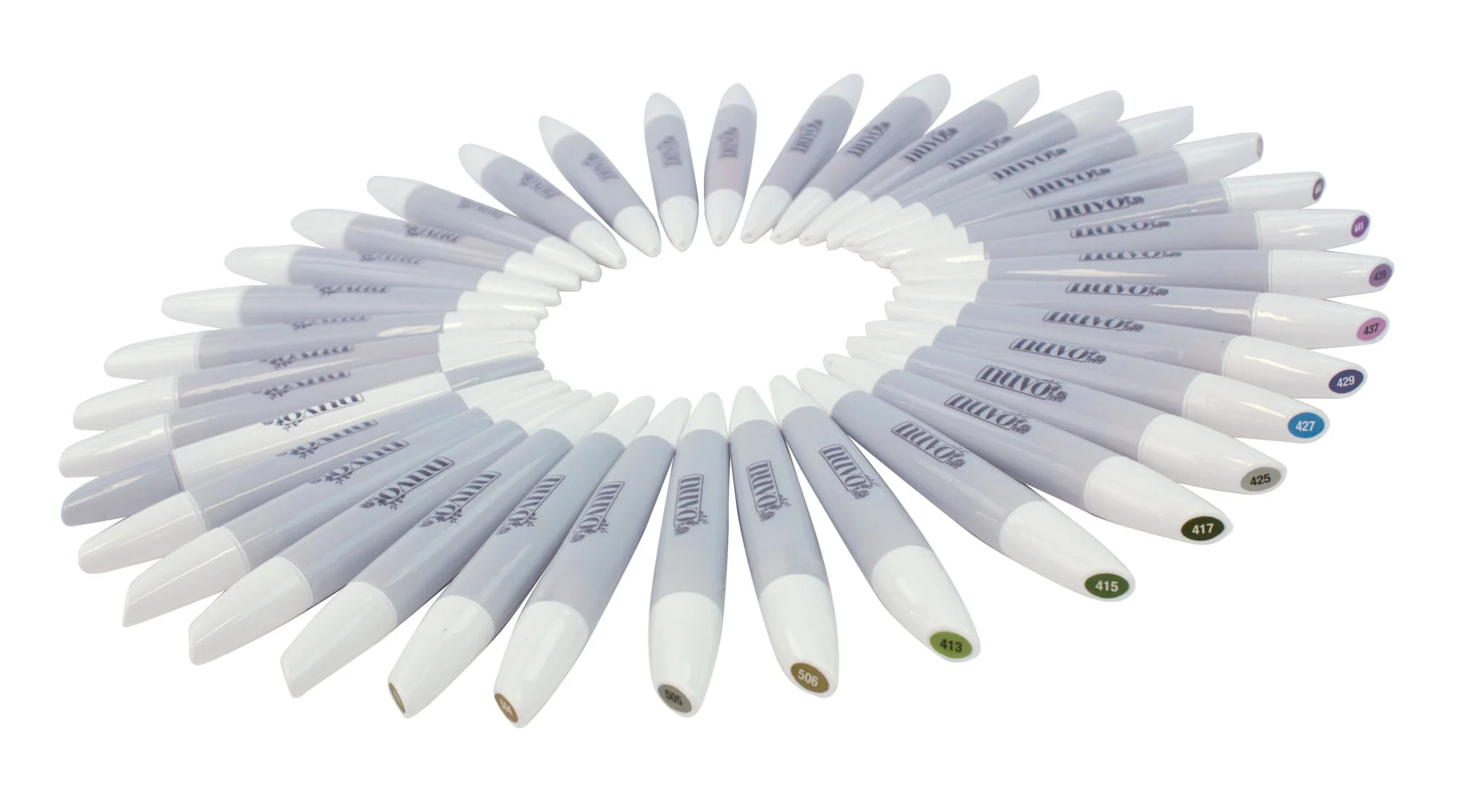 Los Nuvo Marker Pens son plumones basados en alcohol, la gama competa consta de treinta colores brillantes y tres opciones metálicas a base de agua.