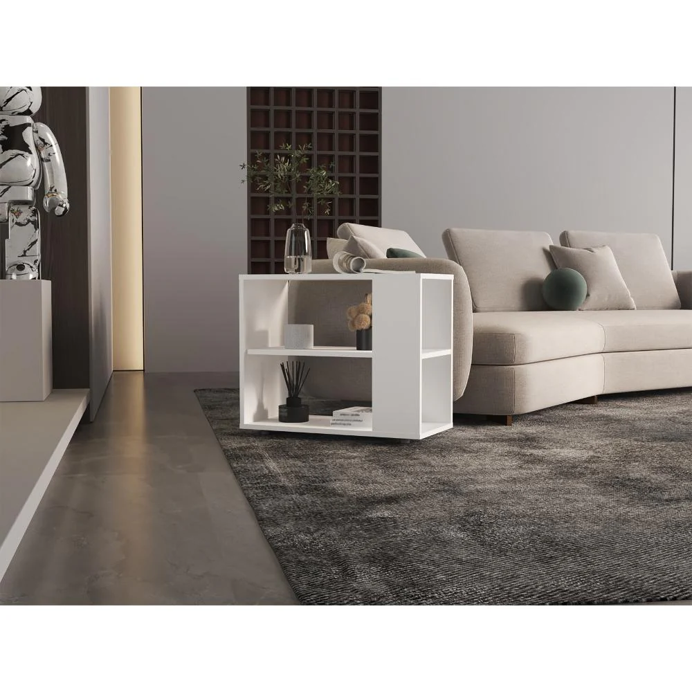 Mesa Auxiliar, con diseño minimalista, espacio para guardar objetos como libros y decoración, facil armado.