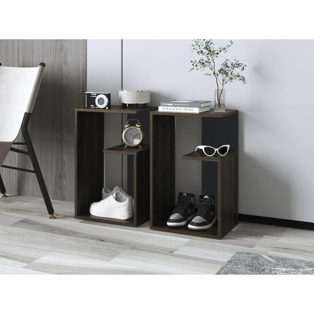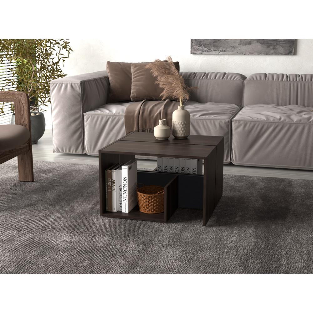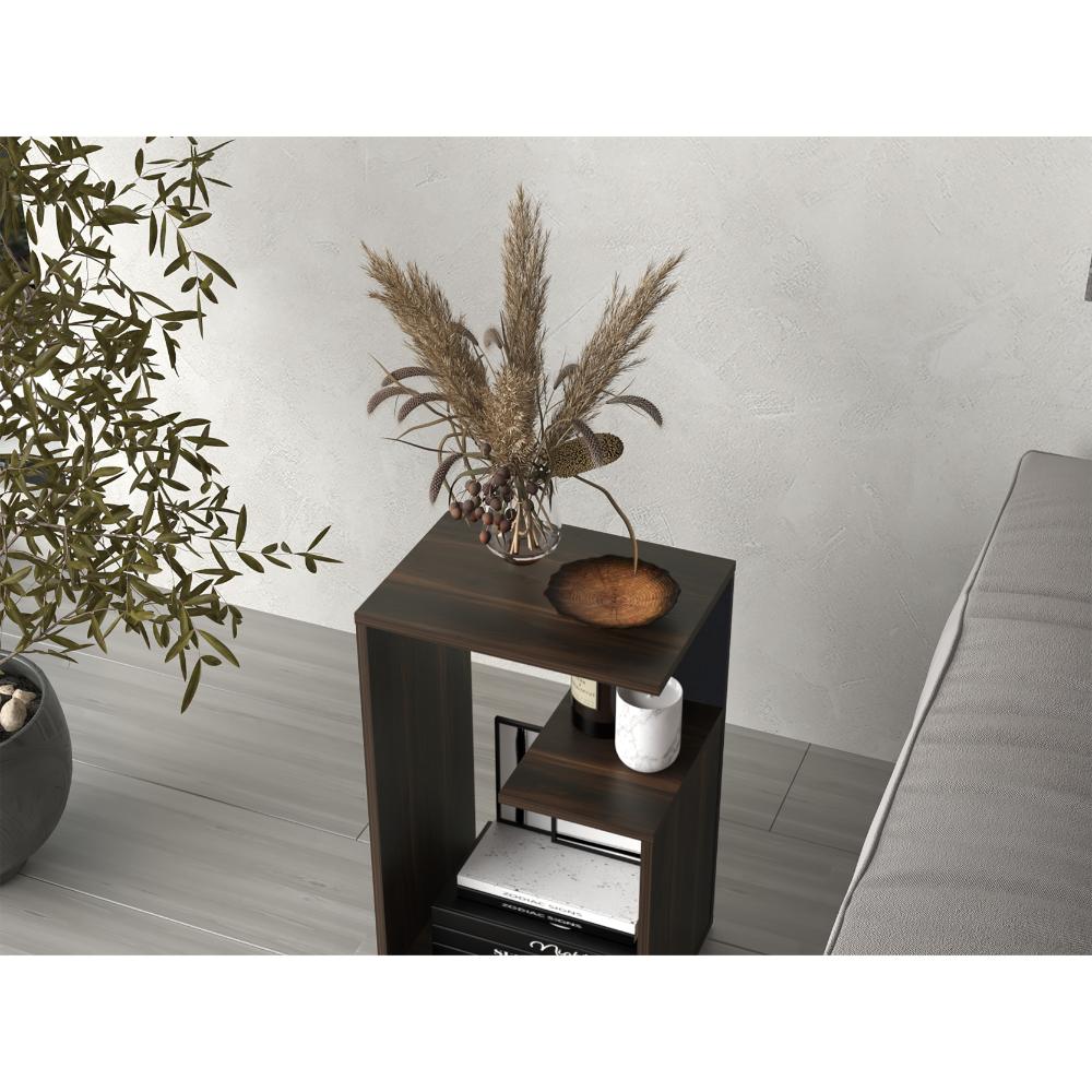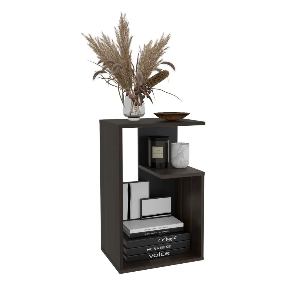 Mesa Auxiliar, con diseño moderno y espacio para objetos decorativos, libros, discos Lp y otros.