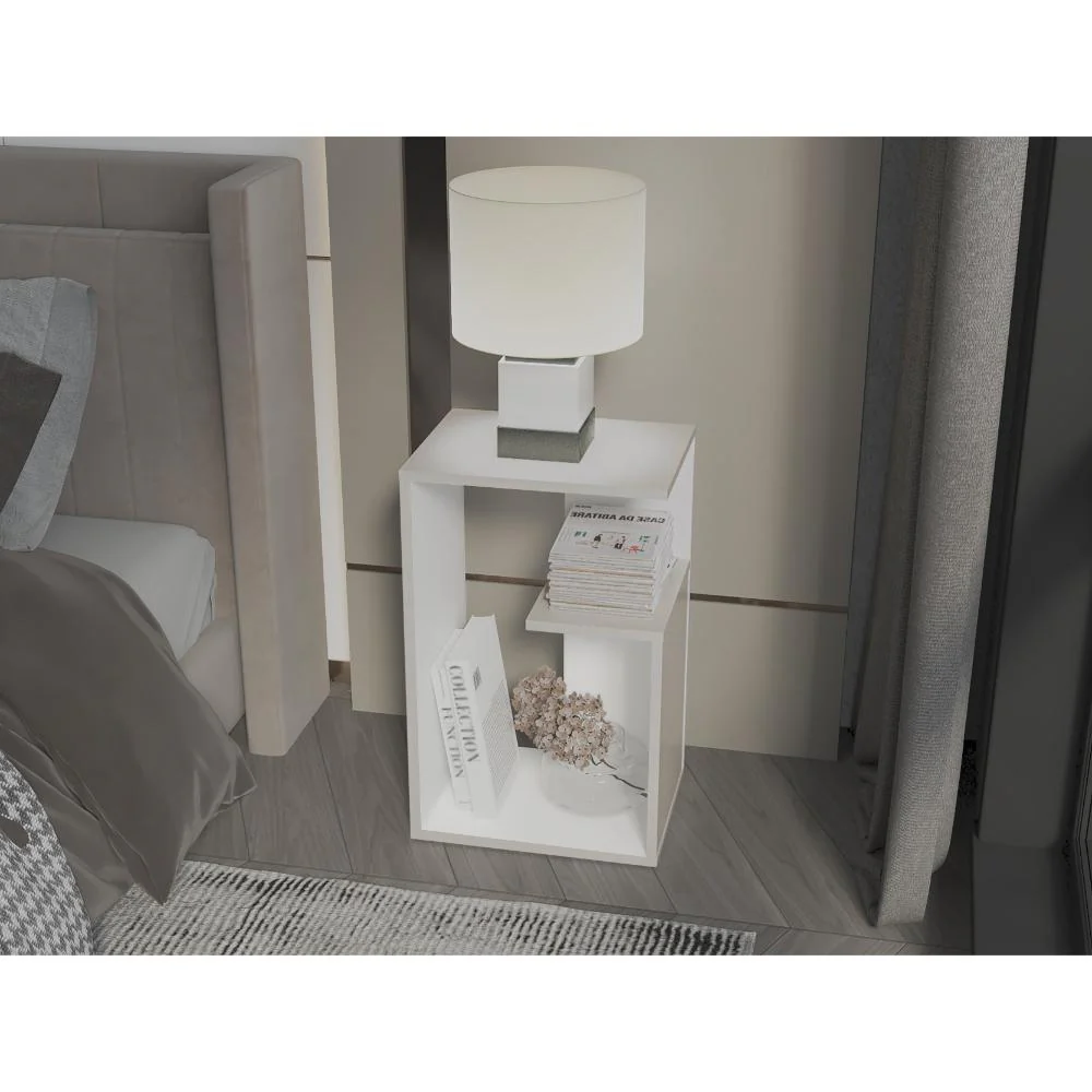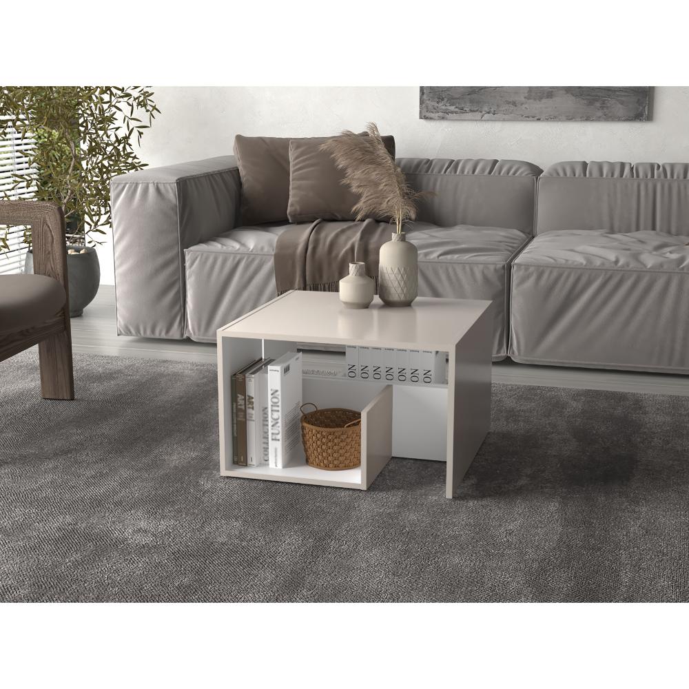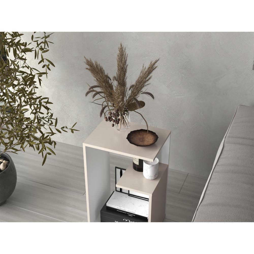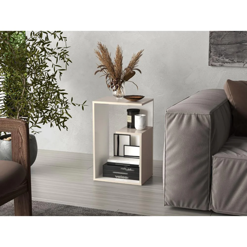 Mesa Auxiliar, con diseño moderno y espacio para objetos decorativos, libros, discos Lp y otros.
