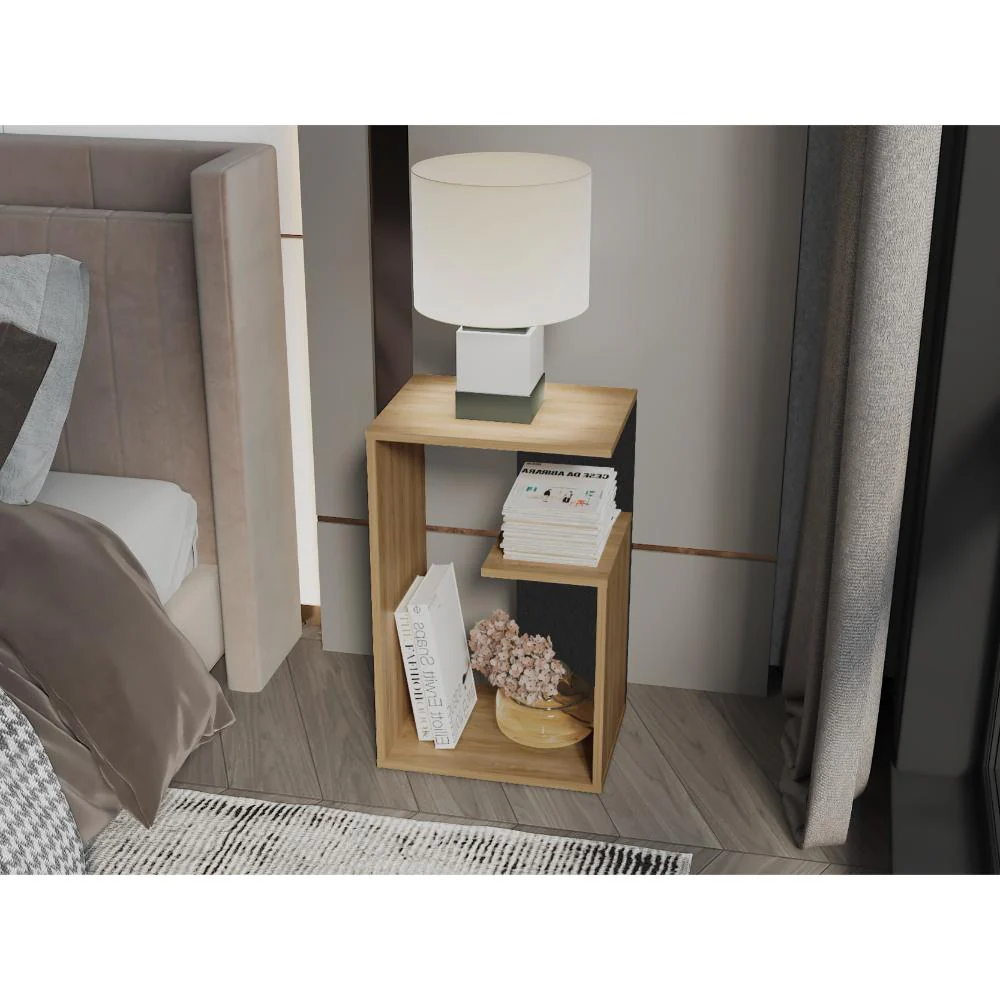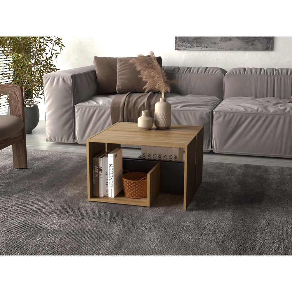 Mesa Auxiliar, con diseño moderno y espacio para objetos decorativos, libros, discos Lp y otros.