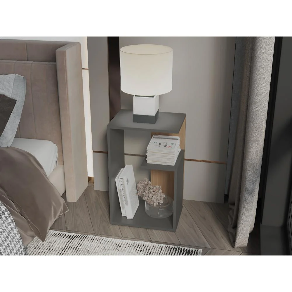 Elaborado en Madera aglomerada MDP, recubierta con láminas melamínicas de excelente calidad, en color Plata Oscuro y Fresno Europeo