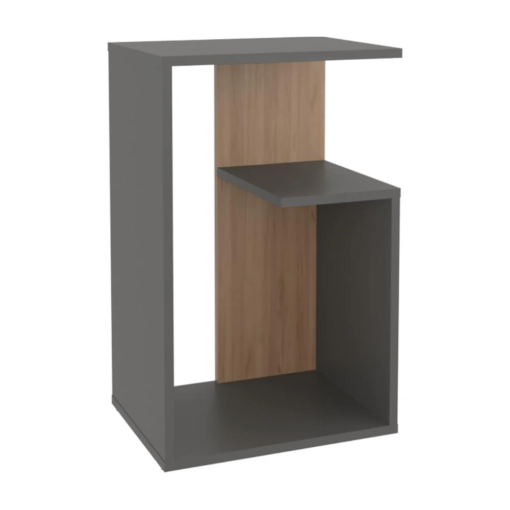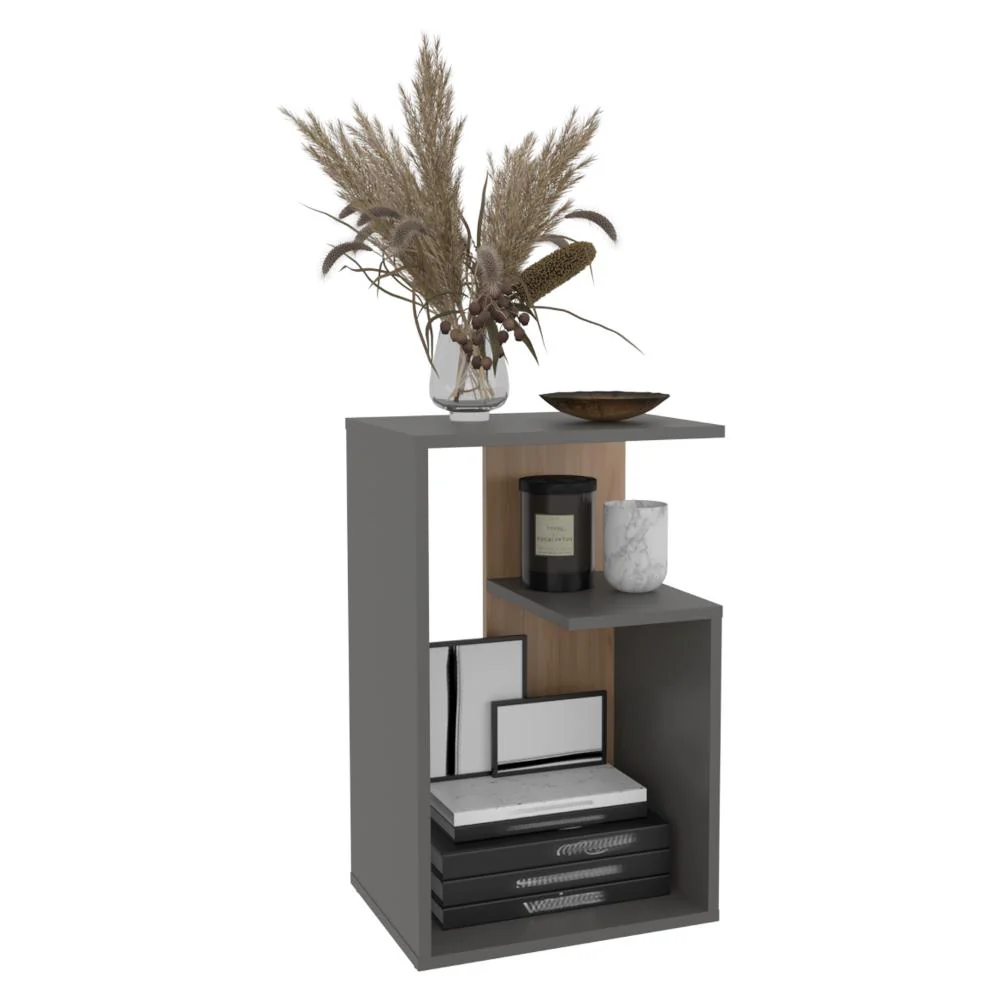 Mesa Auxiliar, con diseño moderno y espacio para objetos decorativos, libros, discos Lp y otros.