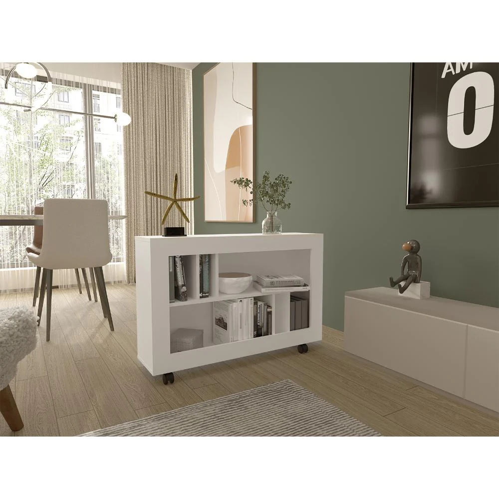 Mesa Auxiliar Jorge, Blanco, con espacio para guardar objetos como libros y decoracion ZF