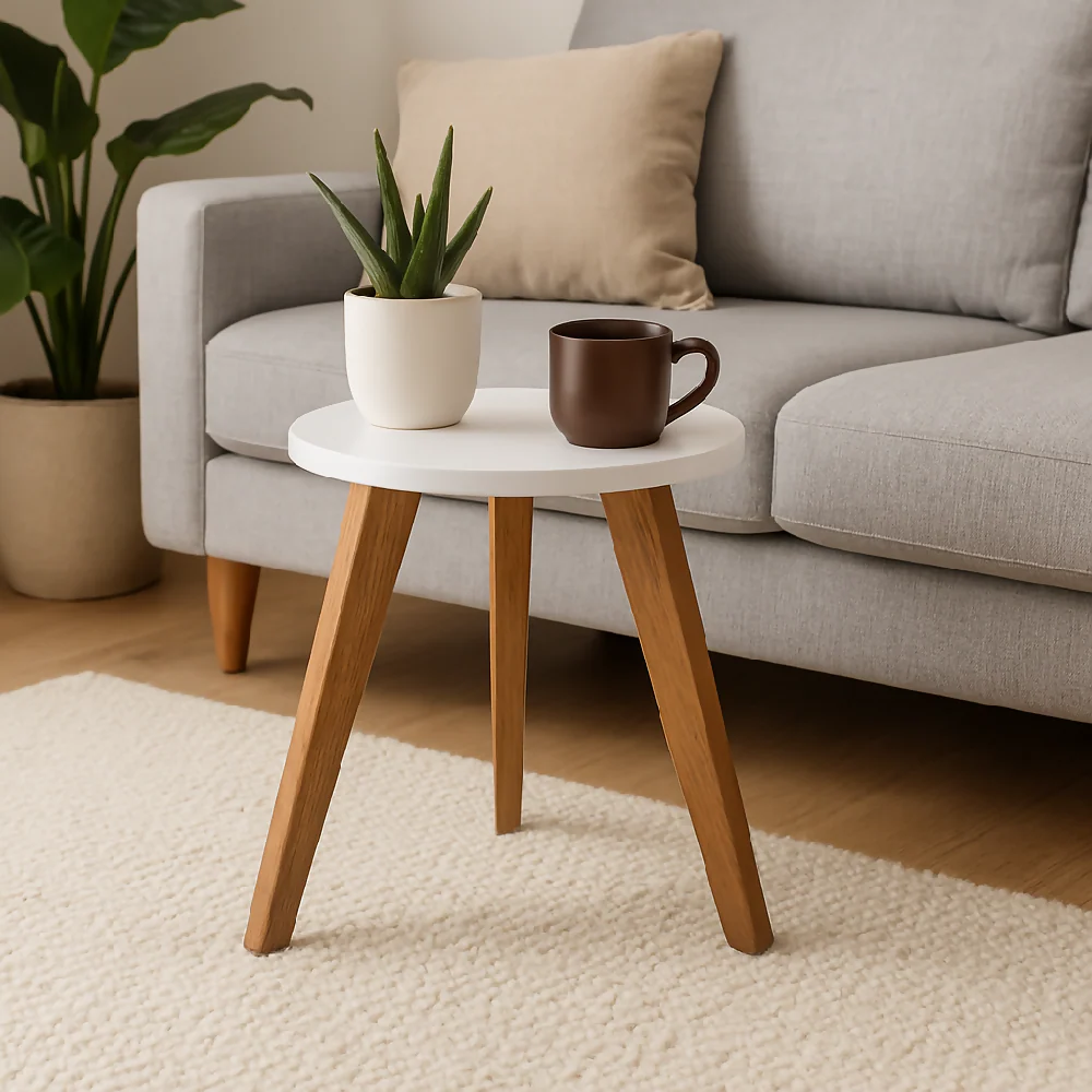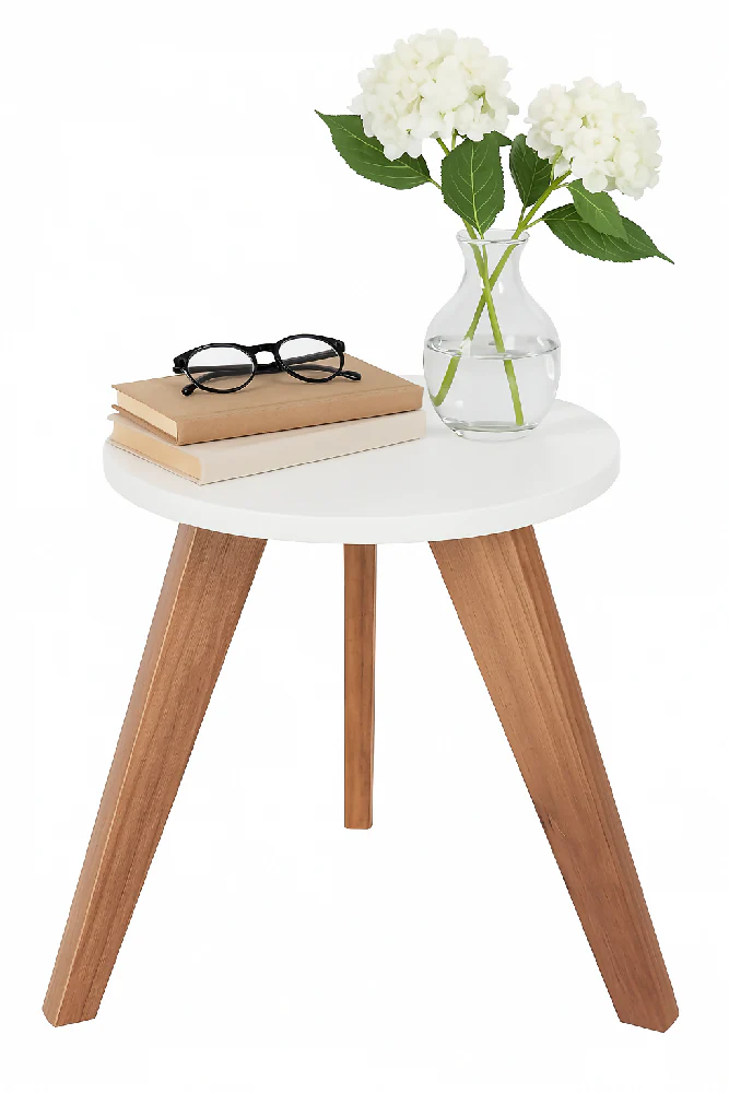 Mesa decorativa con diseño nórdico, ideal para complementar salas, recámaras o espacios de lectura. Fabricada con estructura de Madera Solera y láminas melamínicas MDP marca Duratex, recubierta con acabado blanco mate de excelente calidad.