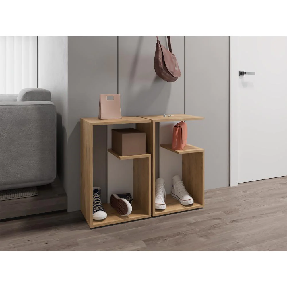 Mesa Auxiliar, con diseño moderno y espacio para objetos decorativos, libros, discos Lp y otros.