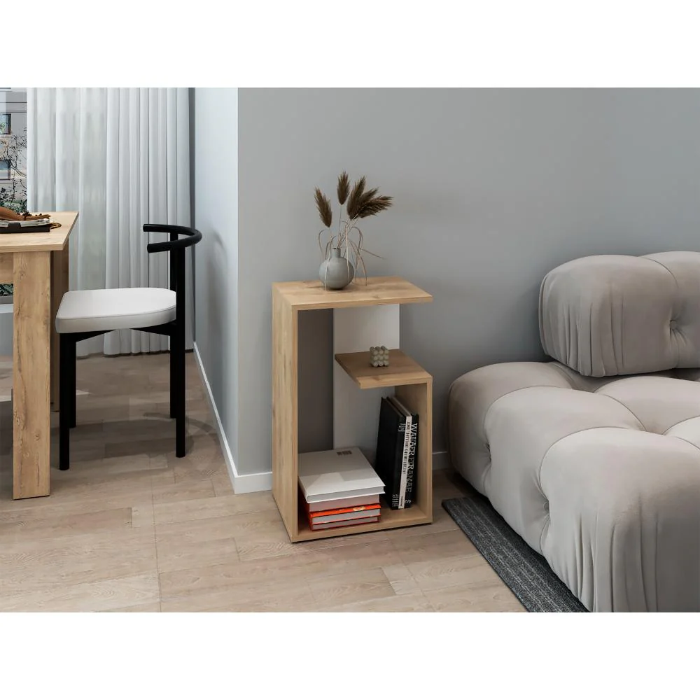 Mesa de Noche Evert, Macadamia y Kronos Blanco, con diseño moderno y espacio para ubicar objetos ZF