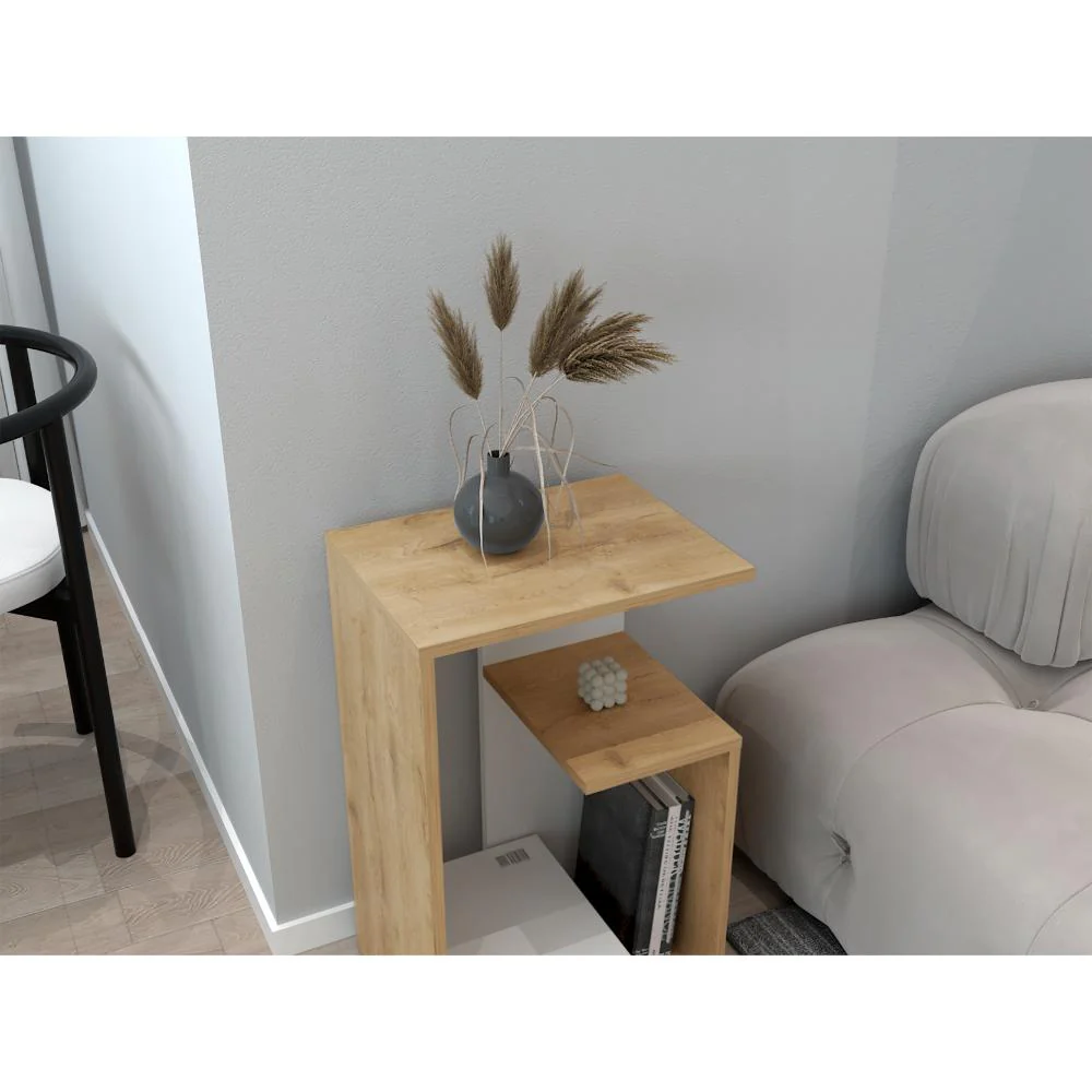Mesa Auxiliar, con diseño moderno y espacio para objetos decorativos, libros, discos Lp y otros.