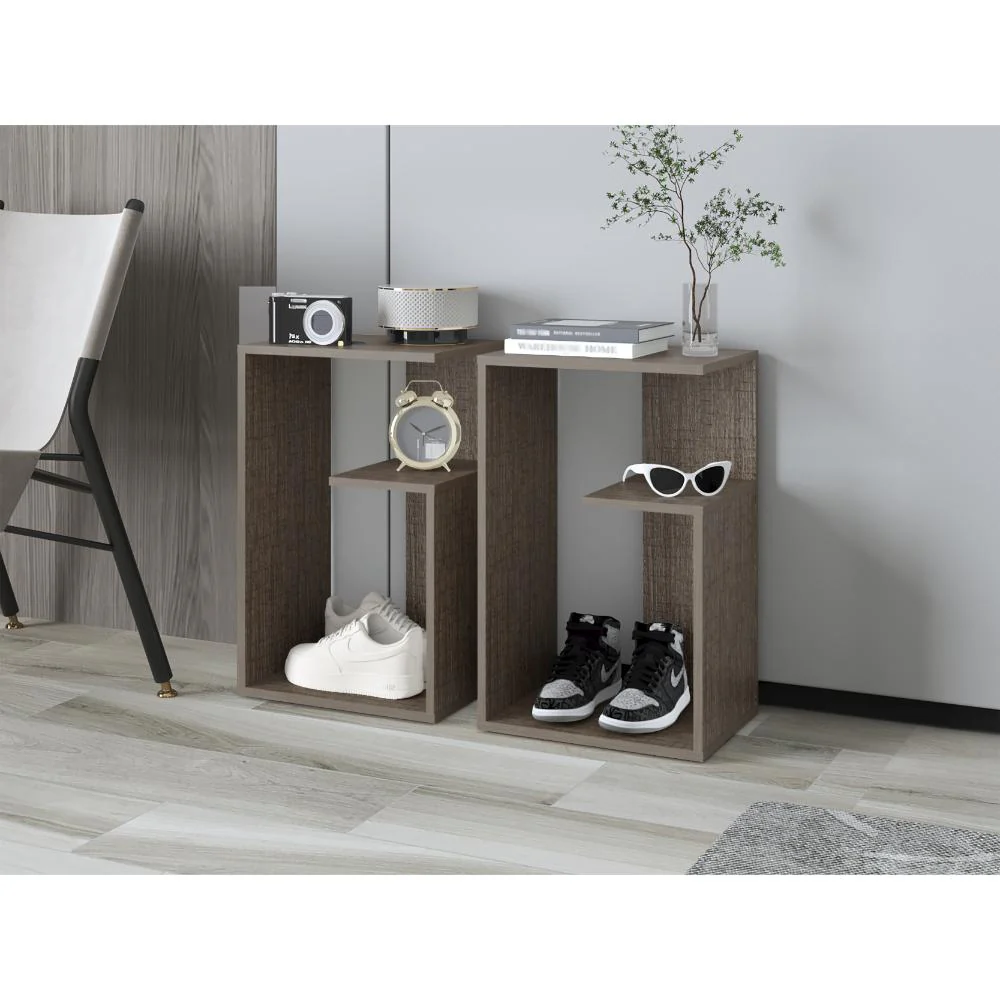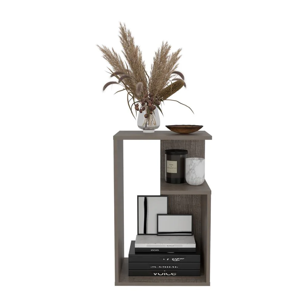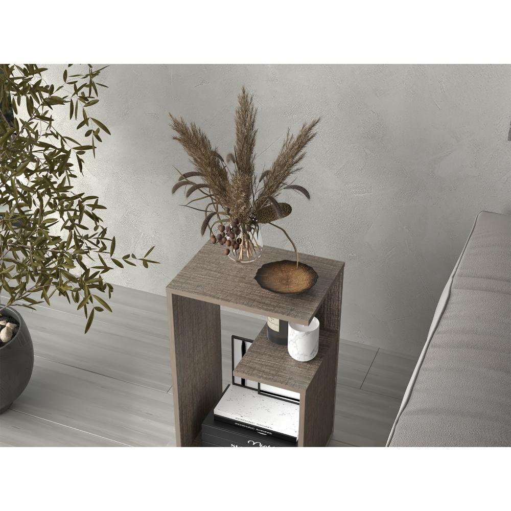 Mesa Auxiliar, con diseño moderno y espacio para objetos decorativos, libros, discos Lp y otros.