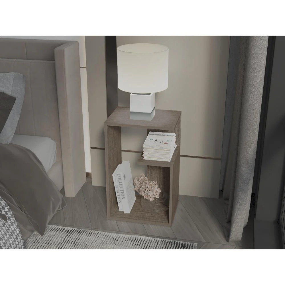 Elaborado en Madera aglomerada MDP, recubierta con láminas melamínicas de excelente calidad, en color Olmo