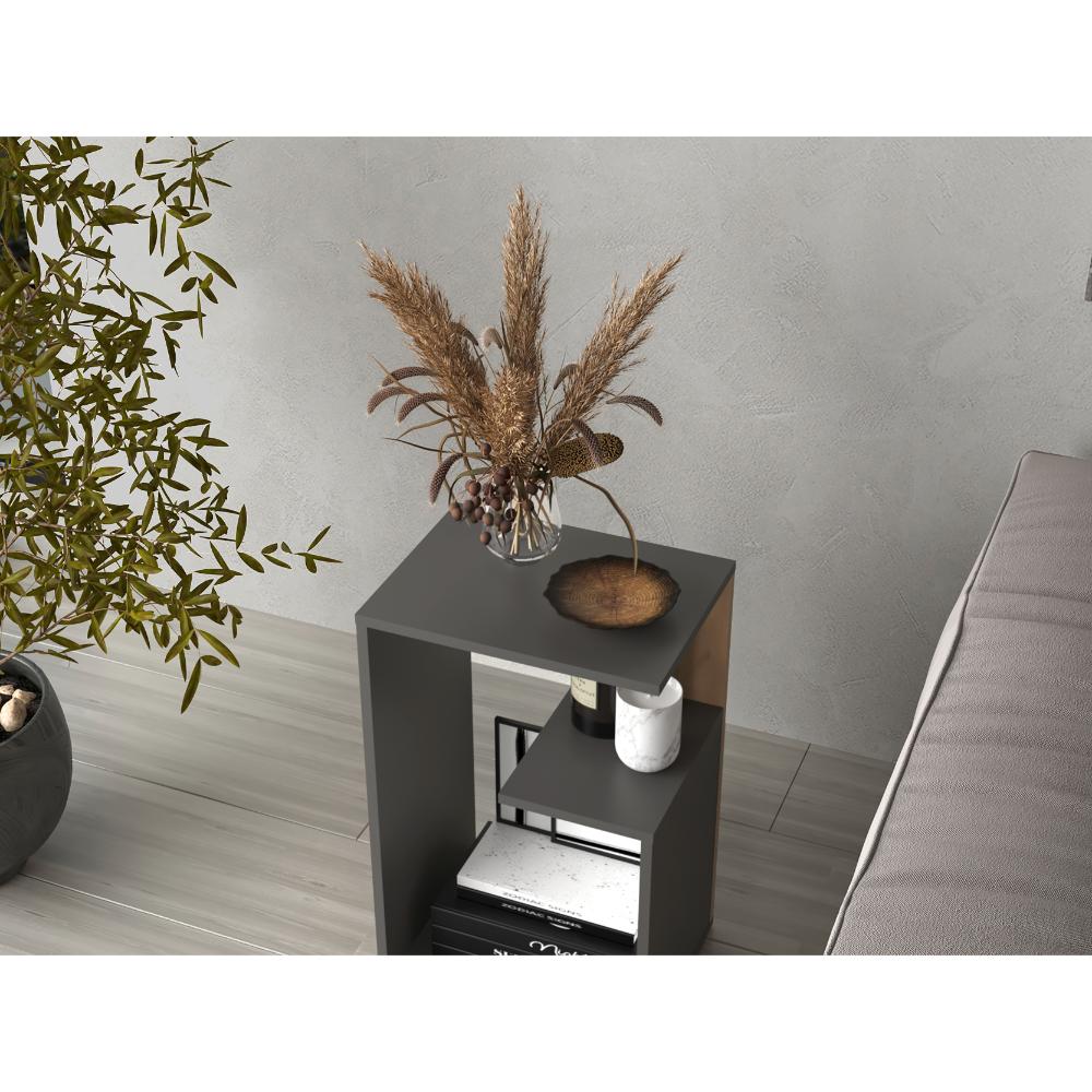 Mesa de Noche Evert, Plata Oscuro y Fresno Europeo, con diseño moderno y espacio para ubicar objetos ZF