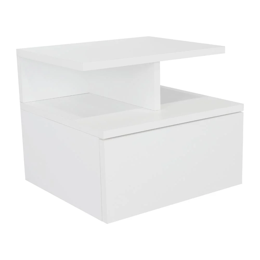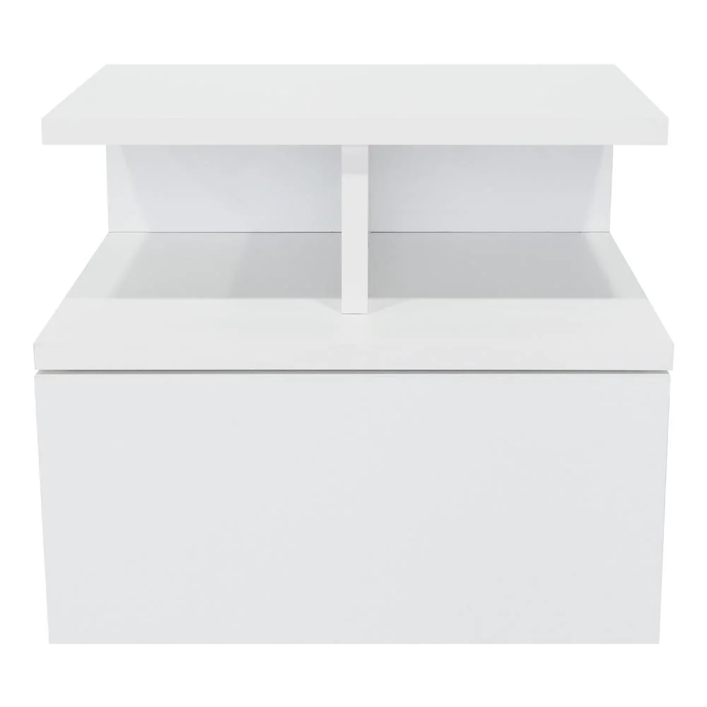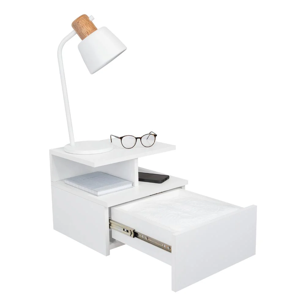 Mesa de Noche Flotante, con un cajón, diseño moderno, y división de dos entrepaños