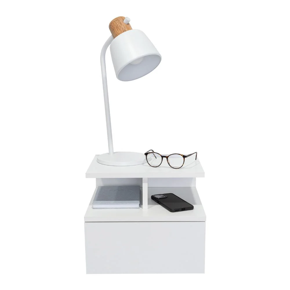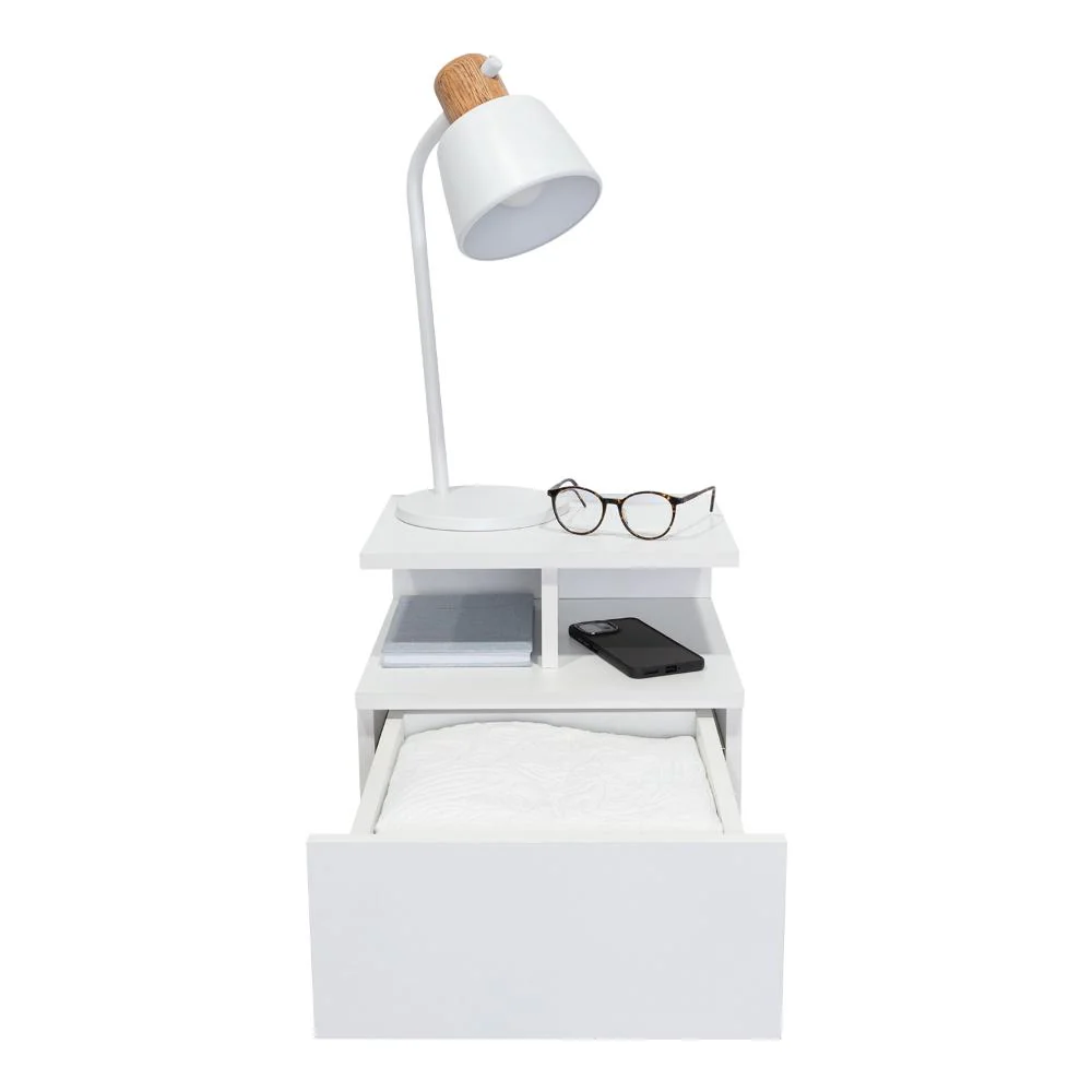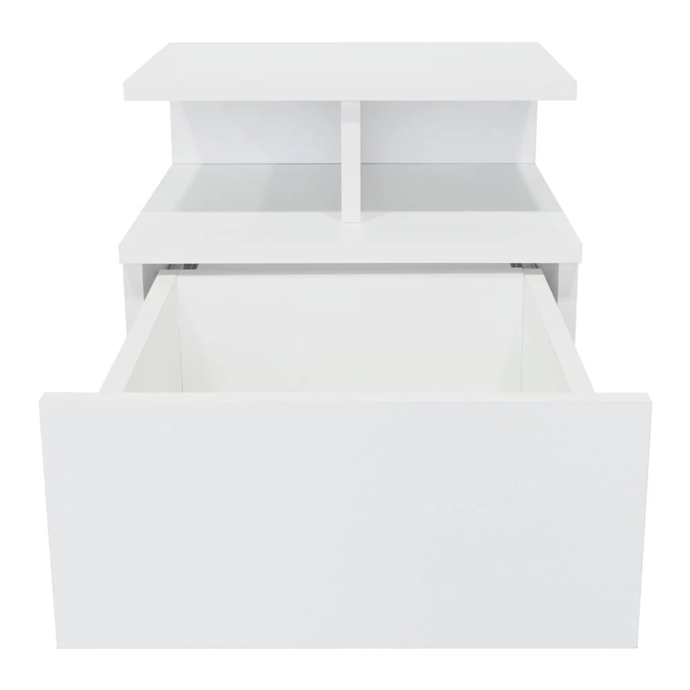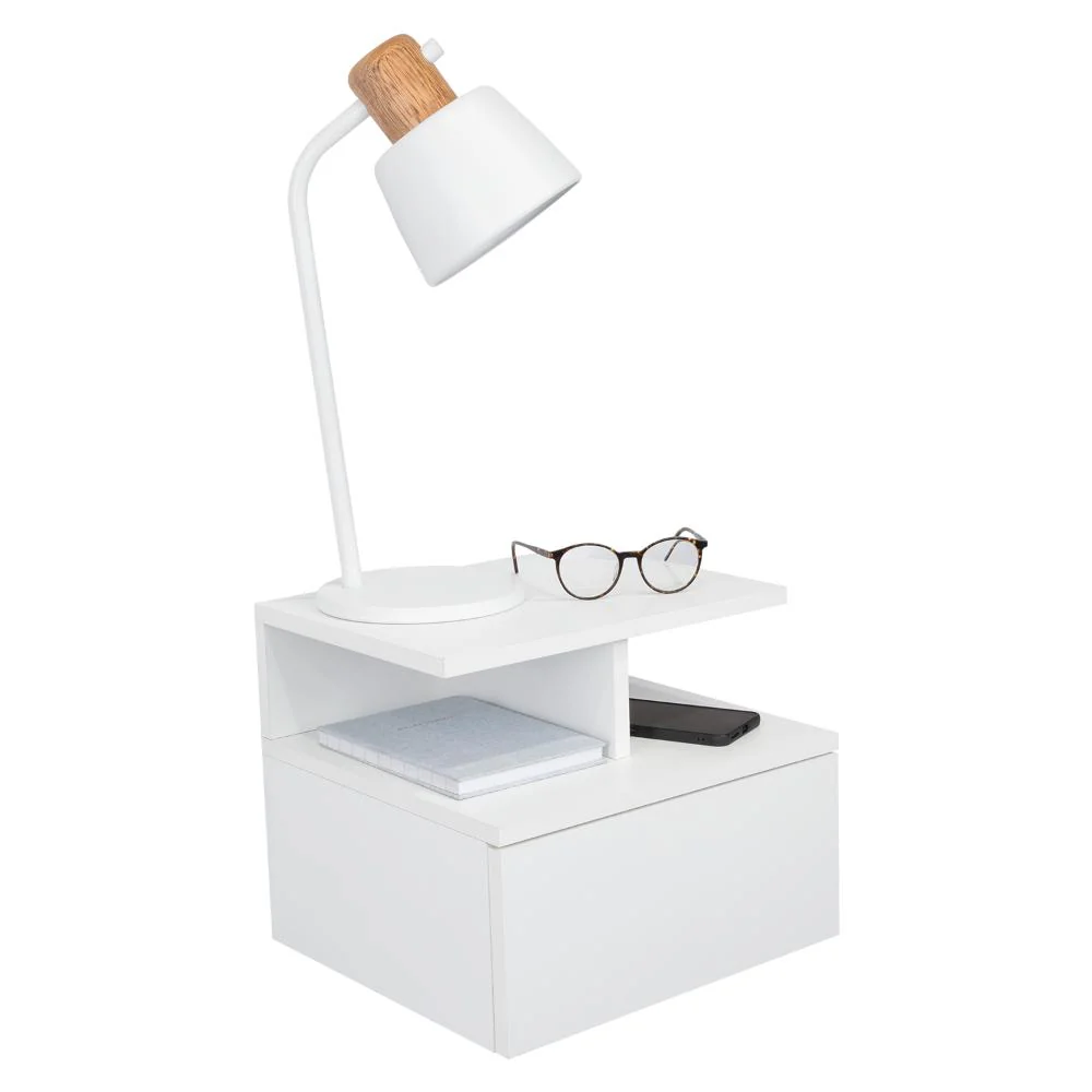 Mesa de Noche Flotante, con un cajón, diseño moderno, y división de dos entrepaños
