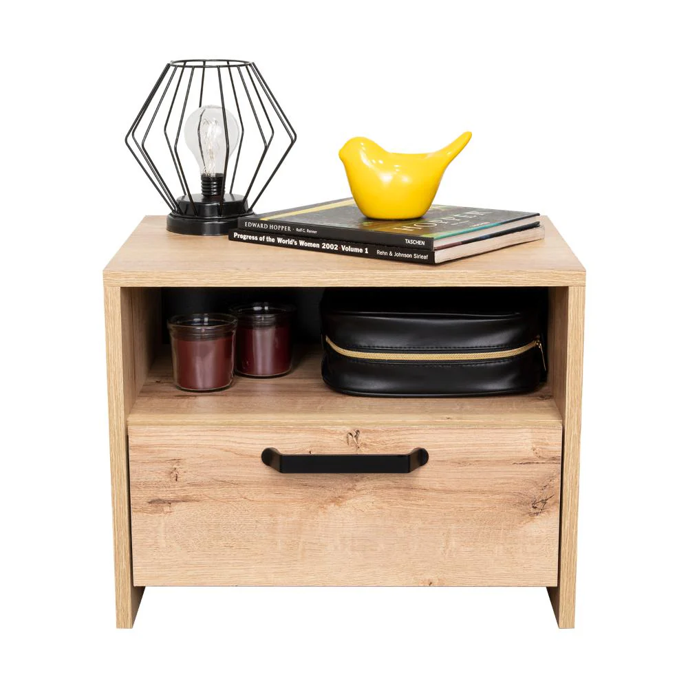 Mesa de Noche, con un cajón, diseño moderno, facil armado