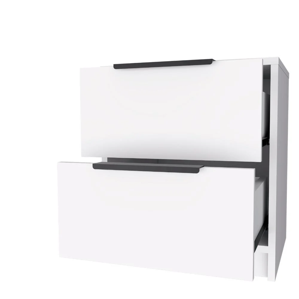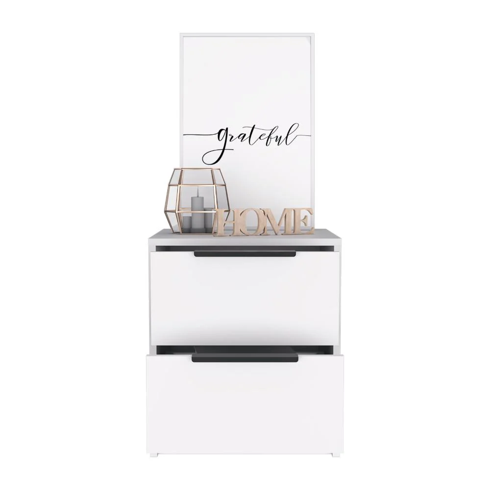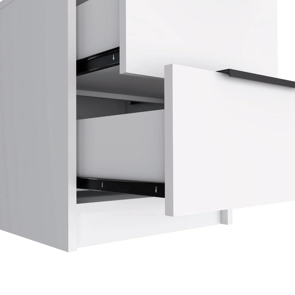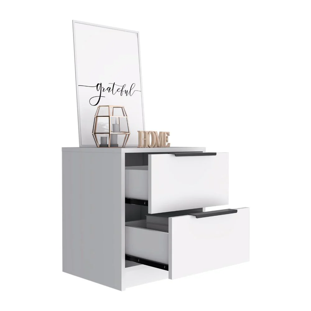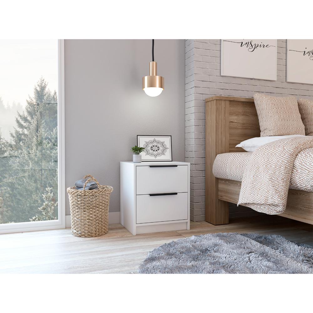 Mesa de Noche, con diseño contemporáneo, contiene dos cajones e incluye manual de ensamble.