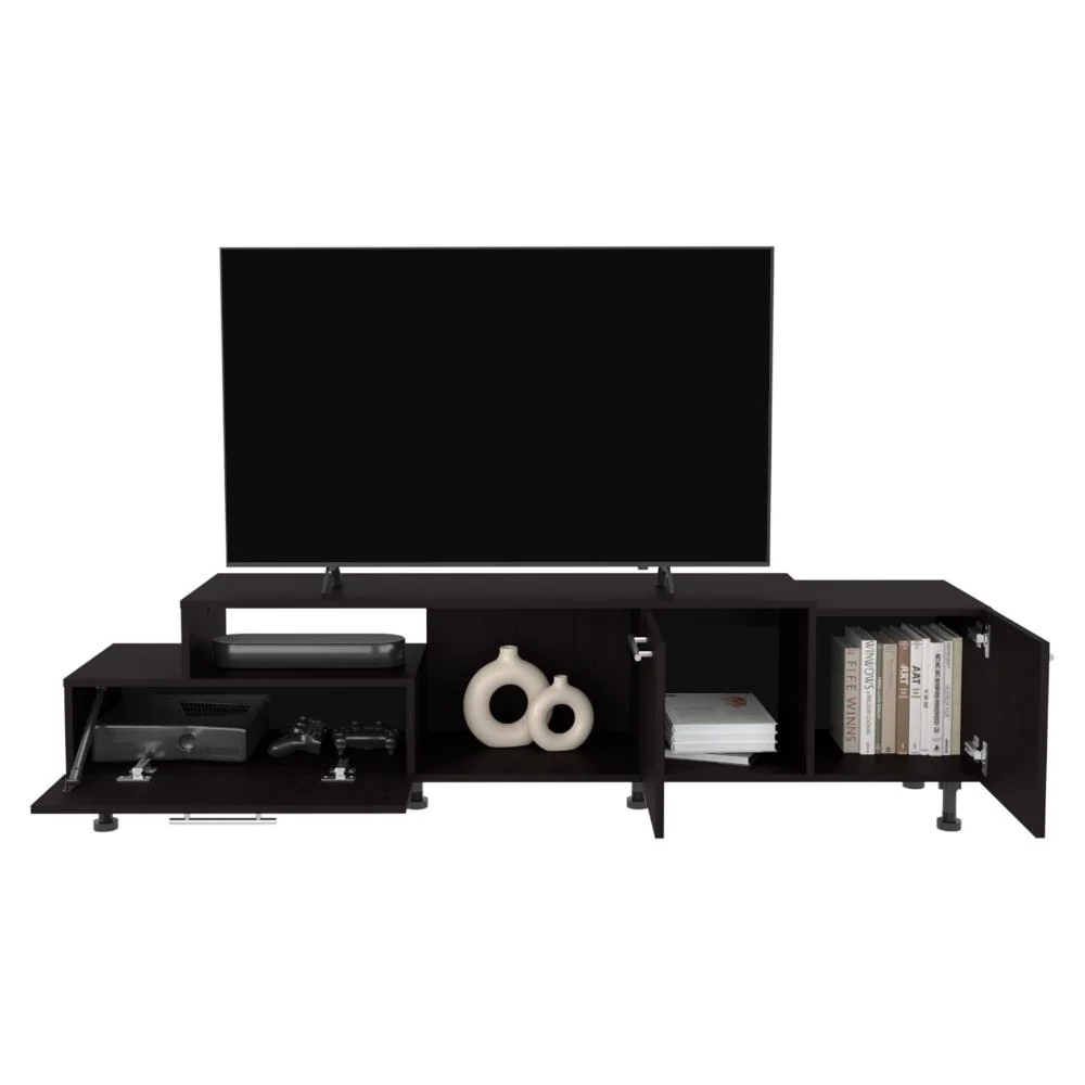 Mesa para TV hasta 70′‘, con tres cajones, facil de armar, superficie para elementos decorativos