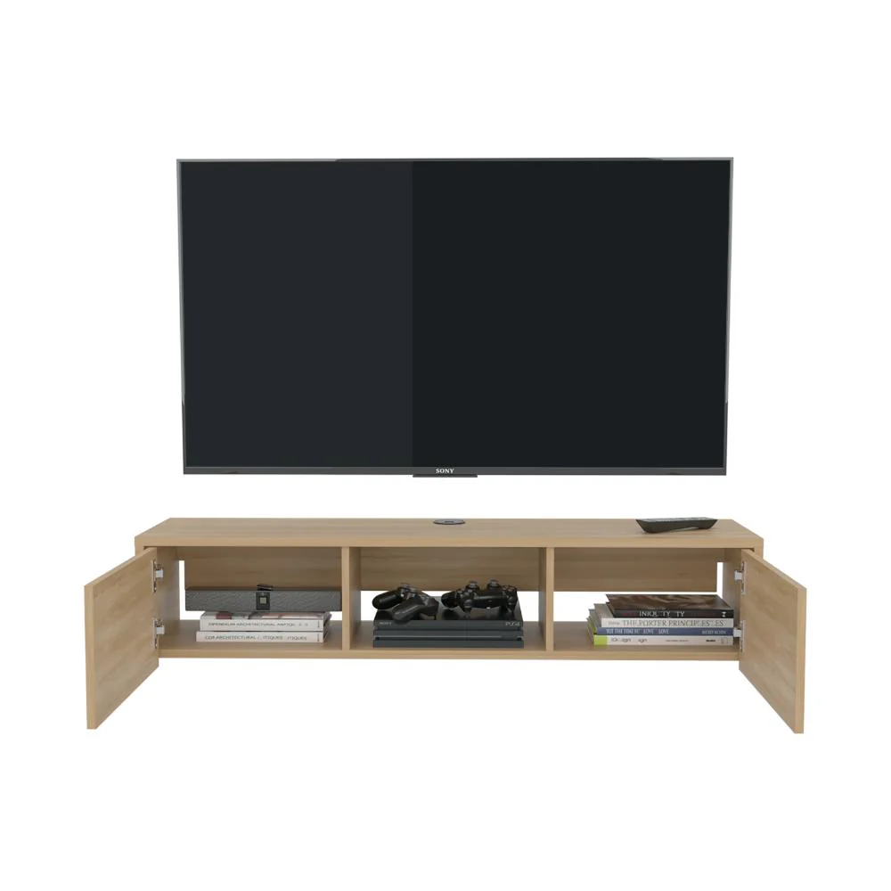Mesa de TV Flotante, con superficie para objetos decorativos, equipos de audio y video, y dos puertas abatibles
