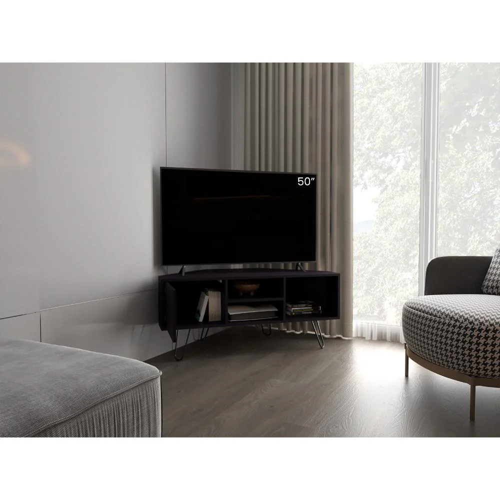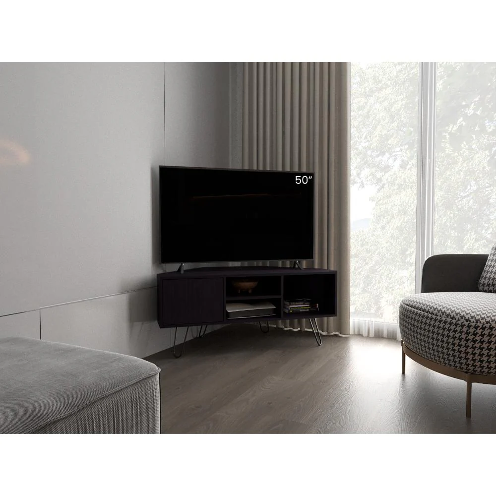Mesa para TV con capacidad de Tv hasta de 50″, 1 puerta abatible, con espacio para color objetos y equipo de audio y video