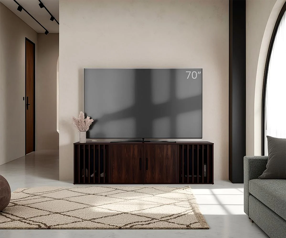Además de soportar el TV, nuestras mesas las puedes usar para guardar y decorar tus espacios con libros, revistas, consolas, equipos de sonido, etc. Todo el entretenimiento en un solo lugar.