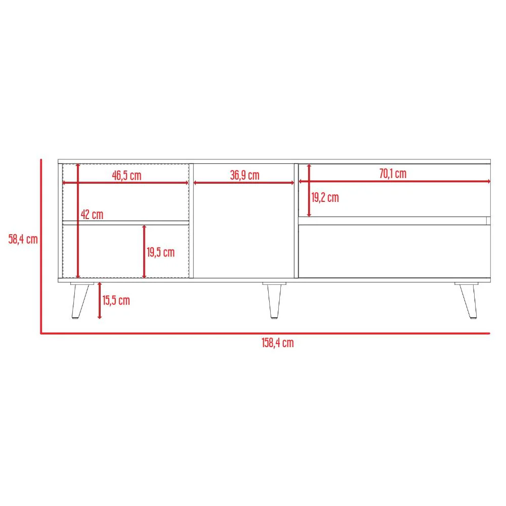 Mesa para TV, con 1 puerta abatible, 2 cajones, capacidad para televisor de hasta 65 pulgadas, espacio para consolas y dispositivos de audio y video.