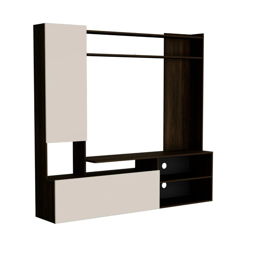 Elaborado en Madera aglomerada MDP, recubierta con láminas melamínicas de excelente calidad, en color Capri y Nogal Europeo.