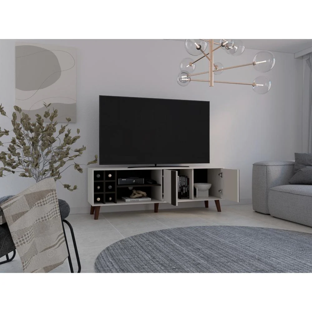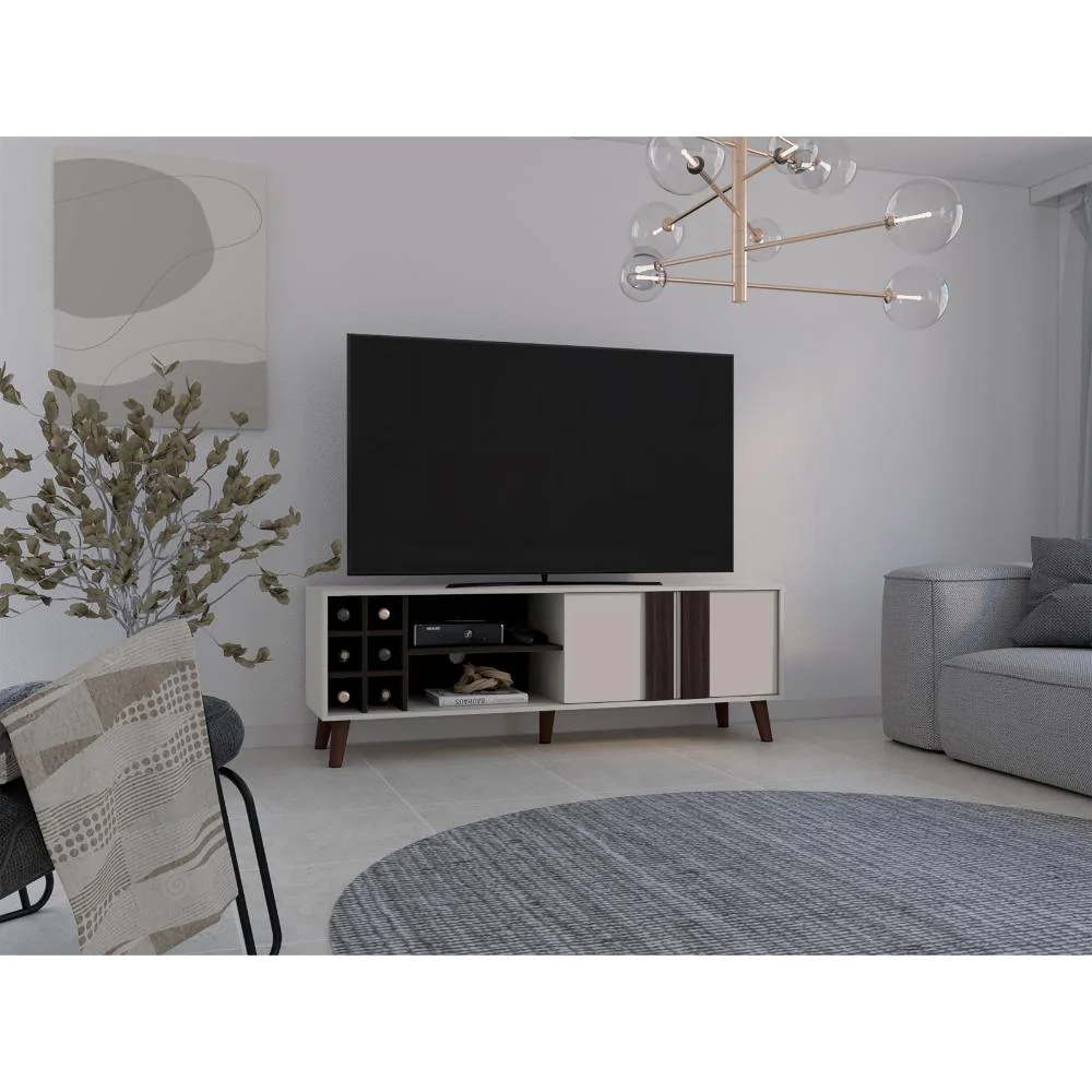 Mesa de TV, con dos puertas abatibles espacio para TV hasta 70», diseño moderno, patas metálicas.