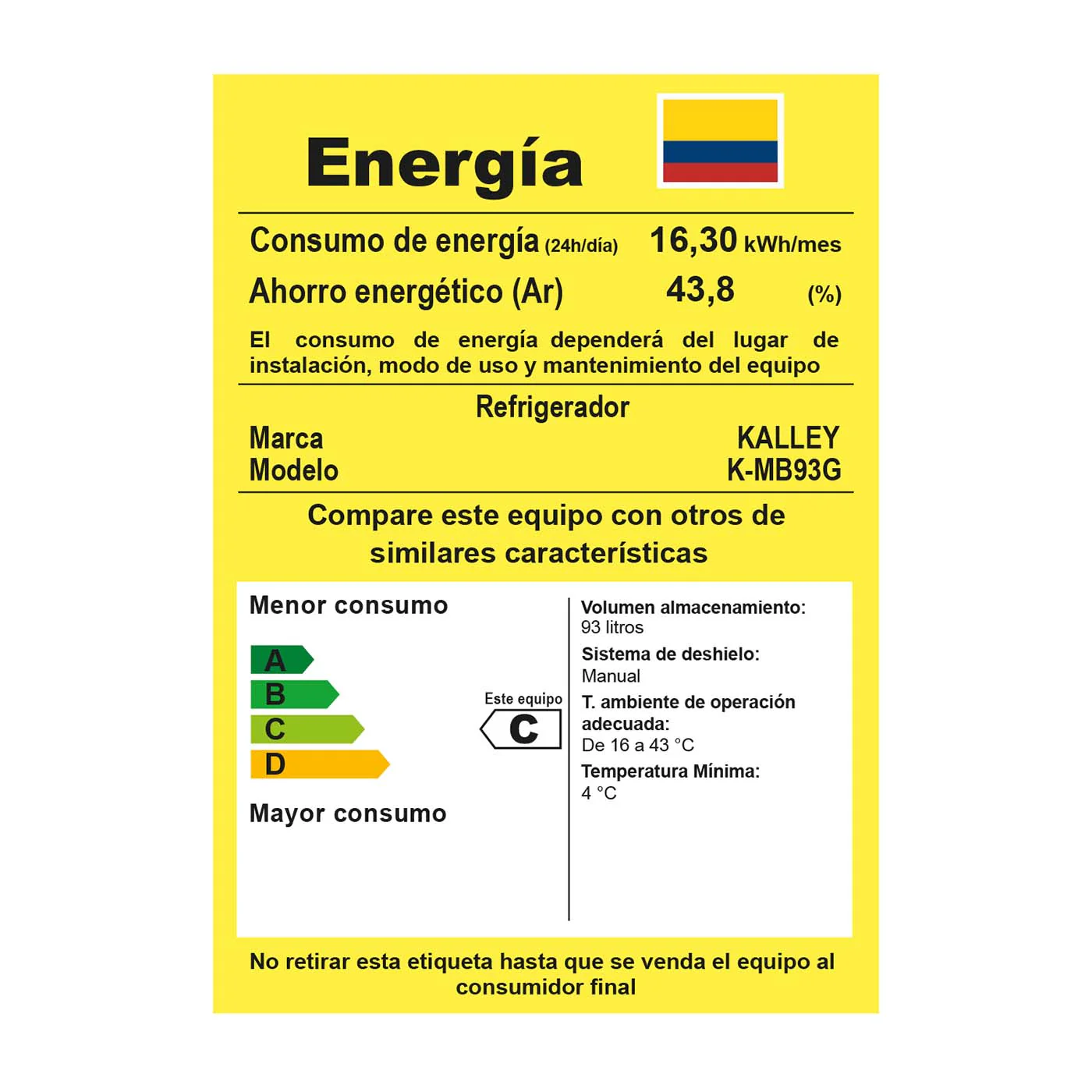 Capacidad de 93 lts, ideal para todos los espacios.