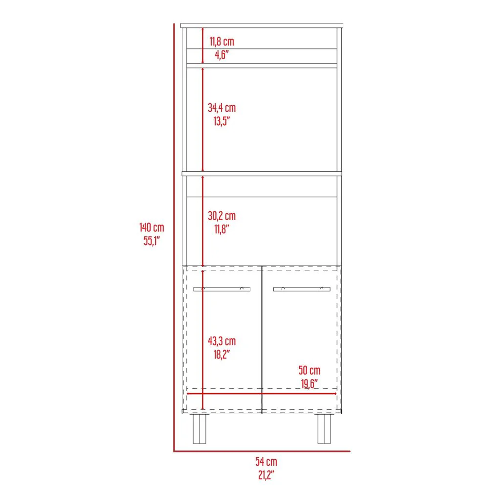 Módulo Microondas, con dos puertas, gran capacidad de almacenamiento, entrepaños internos.