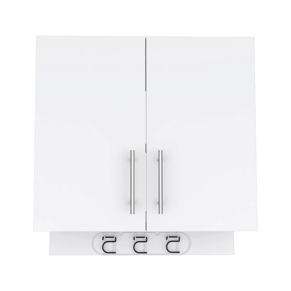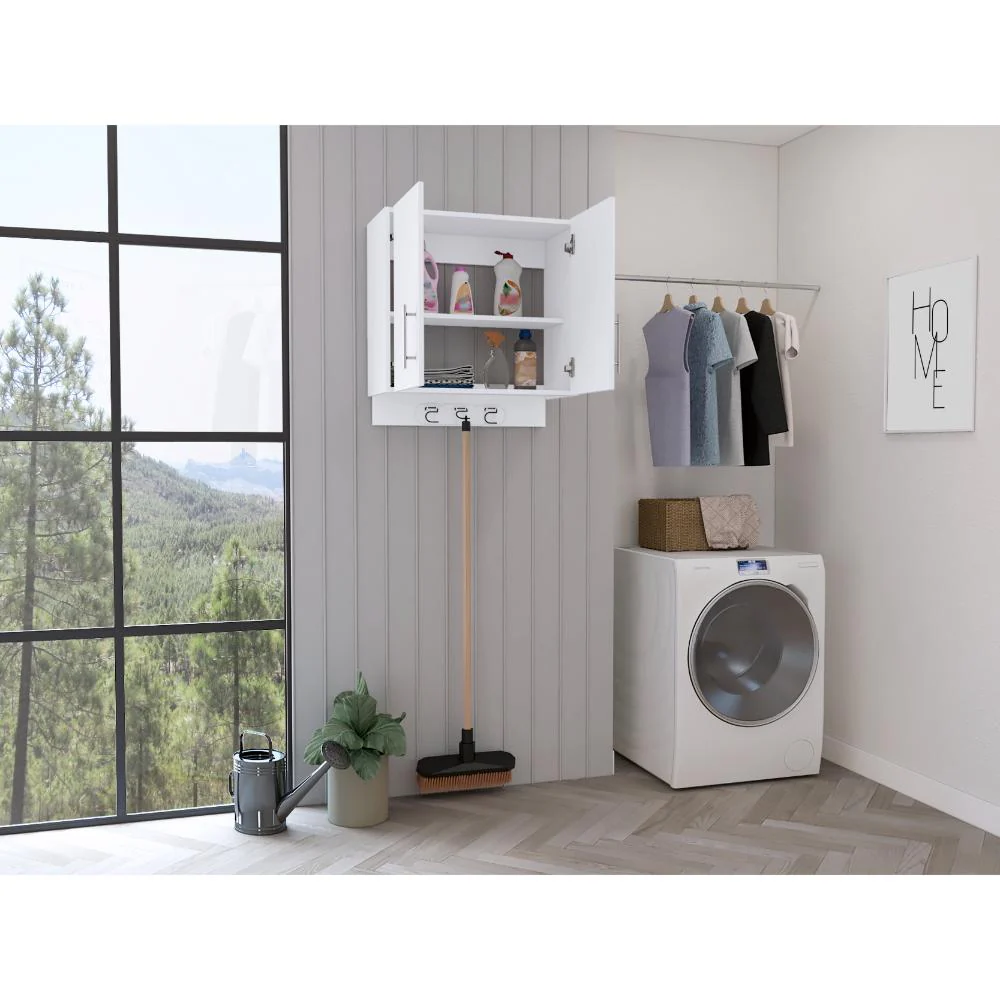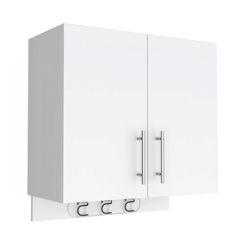Mueble Auxiliar, con colgador de escobas, 2 puertas abatibles., manijas metálicas, y entrepaño para colocar objetos.