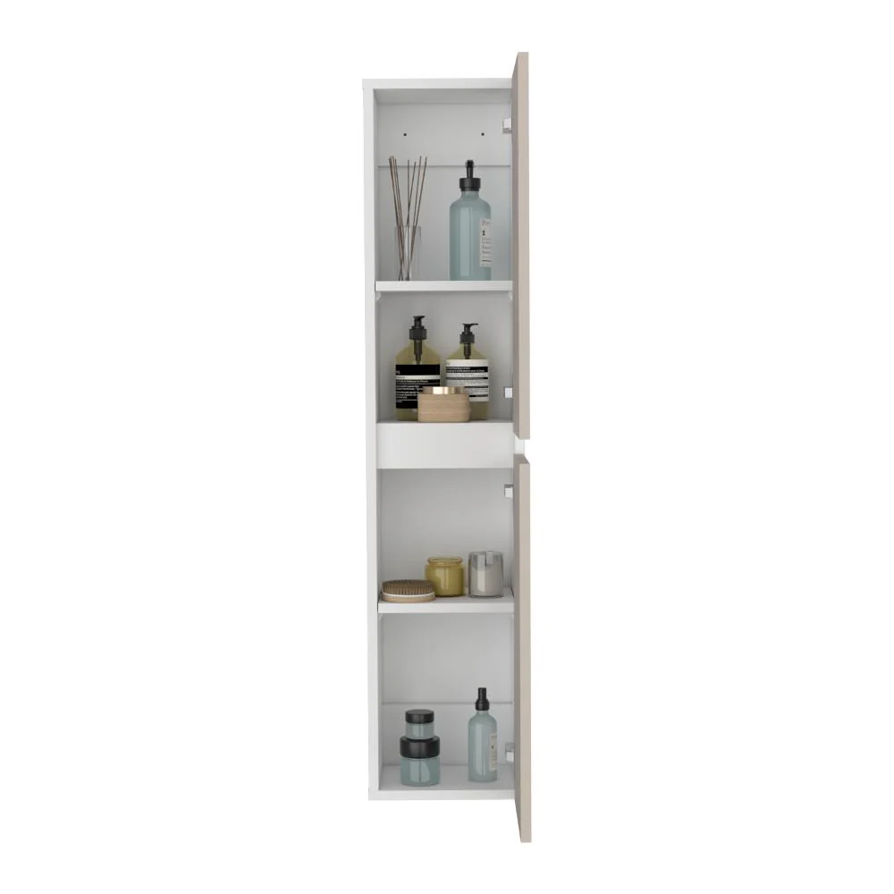 Mueble Auxiliar, va colgado en la pared, cuenta con 2 puertas abatibles, 3 entrepaños, con espacio para almacenar objetos y es de facil instalación