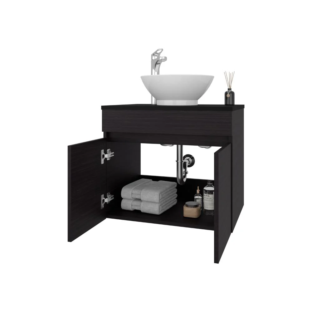 Elaborado en Madera aglomerada MDP, recubierta con láminas melamínicas de excelente calidad, en color Wengue.