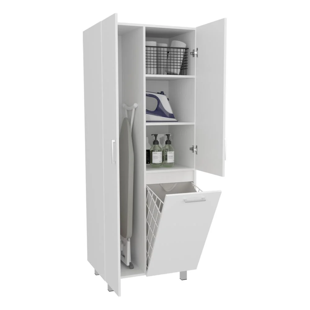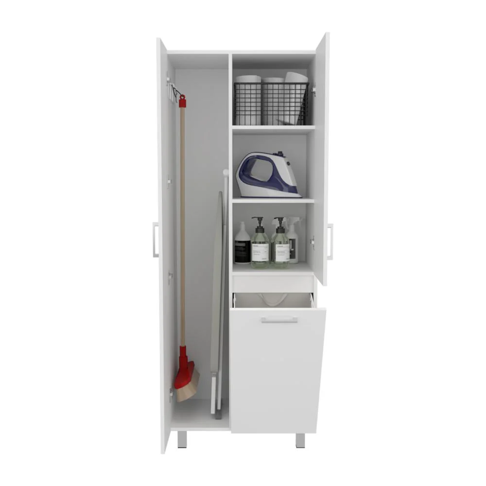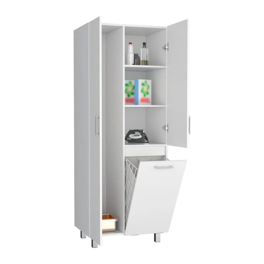 Muebles Aseo con espacio para ubicar objetos de aseo, incluye porta escobas, cesto para la ropa sucia, 3 puertas abatibles y es de facil instalación.
