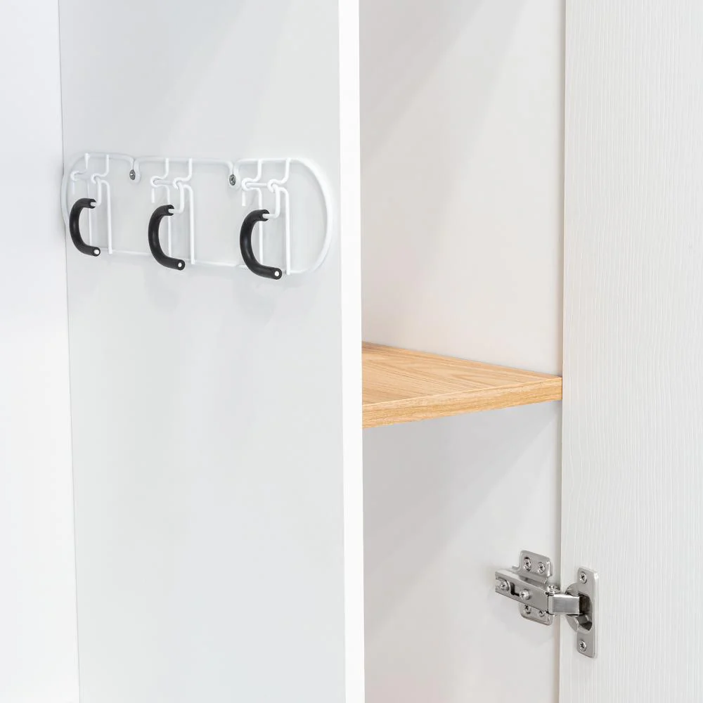 Elaborado en Madera aglomerada MDP, recubierta con láminas melamínicas de excelente calidad, en color Fresno Europeo y Blanco