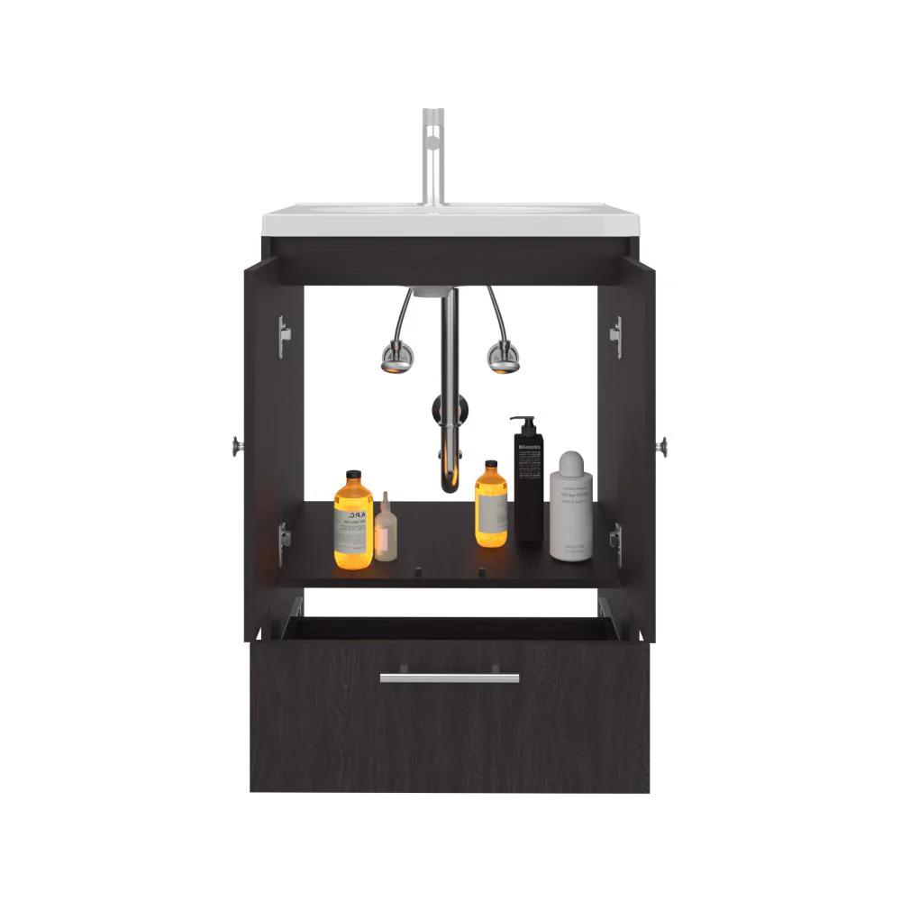 Mueble Lavamanos, con espacio para almacenar objetos, 2 puerta abatibles, 1 cajón, es de fácil instalación e incluye lavamanos