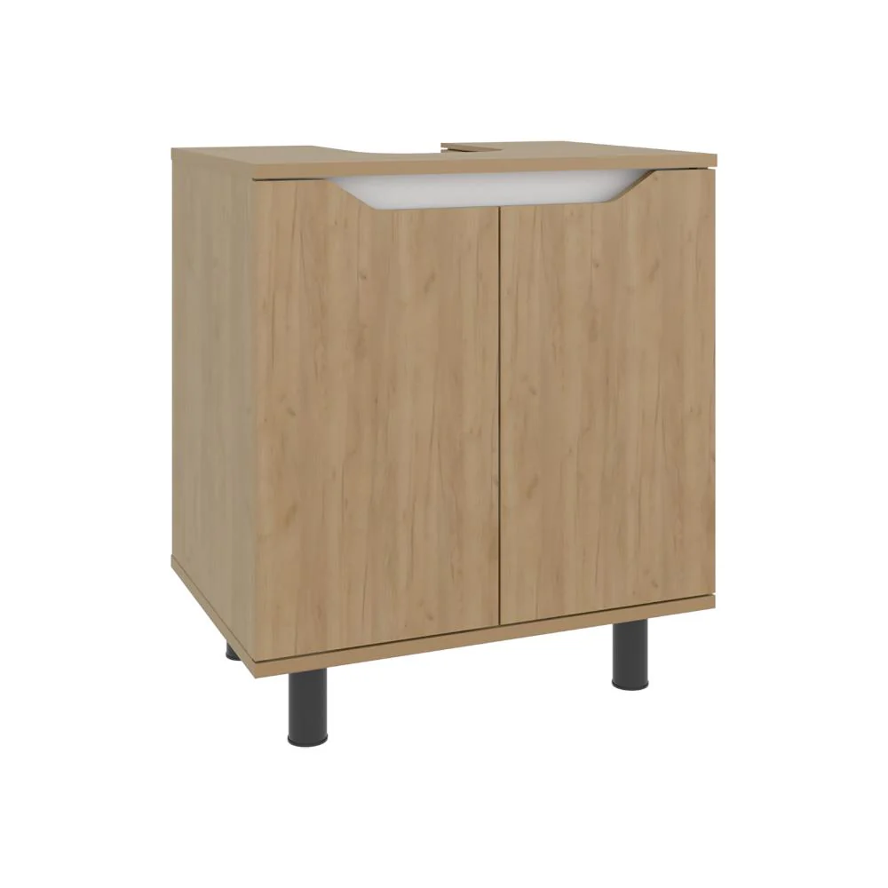 Mueble Lavamanos, con espacio para colocar objetos, una puerta abatible, una patas metalica y es de facil instalación