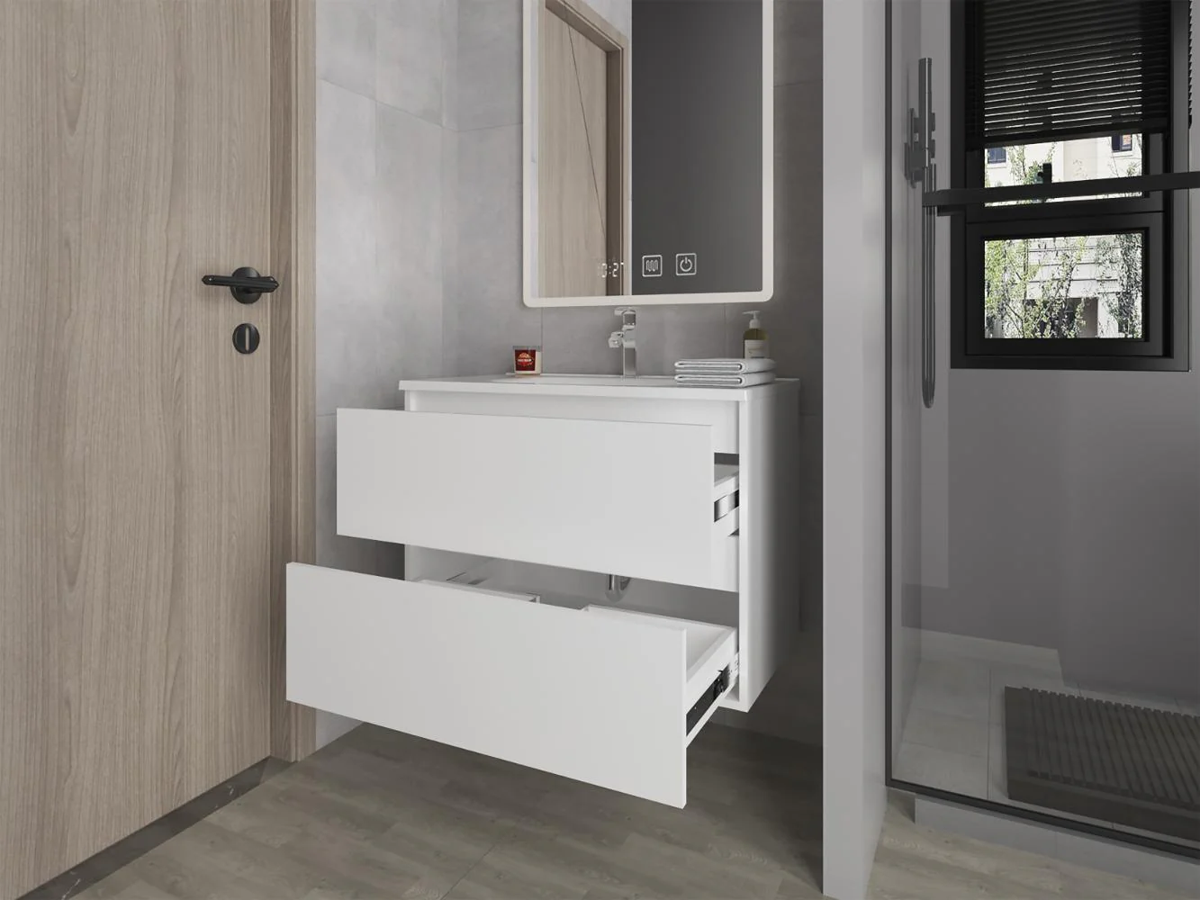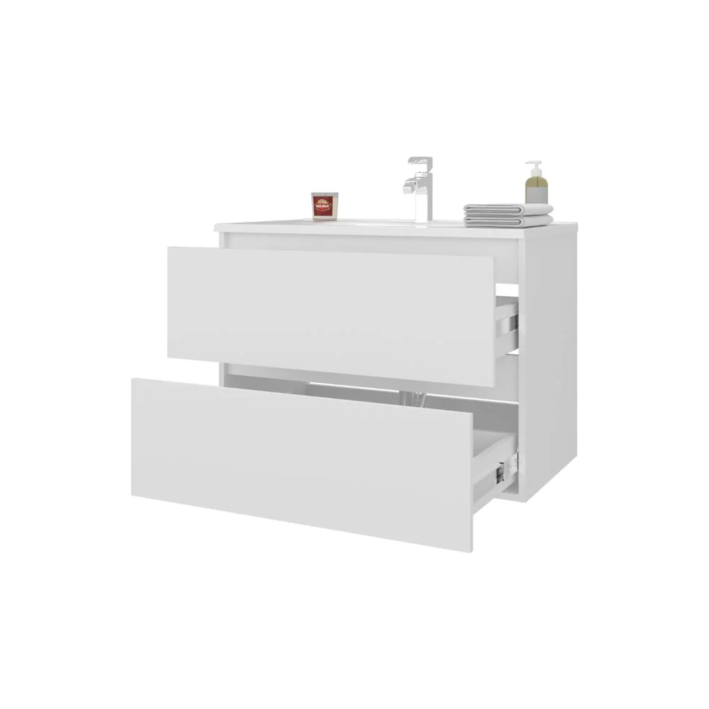 Mueble Lavamanos, con diseño moderno, cuanta con 2 cajones para almacener objetos, es de facil instalación e incluye lavamanos.