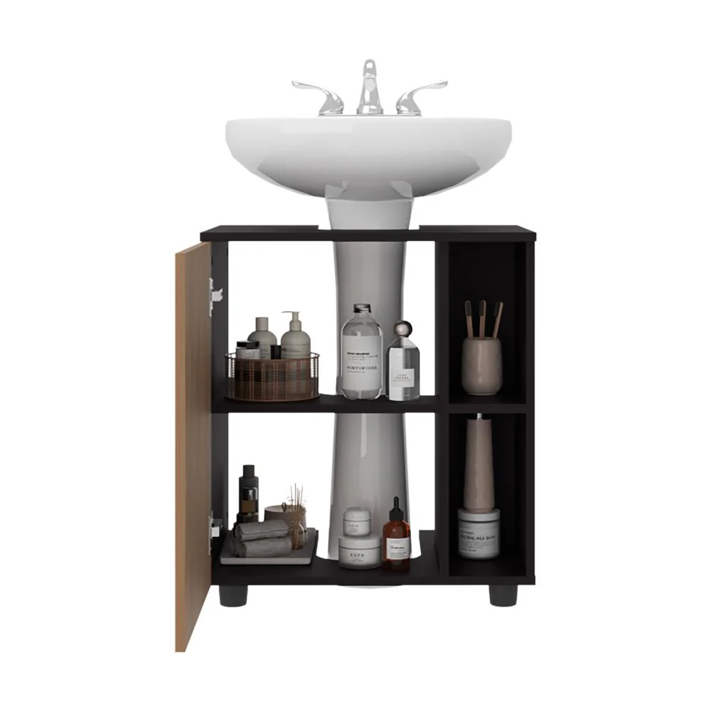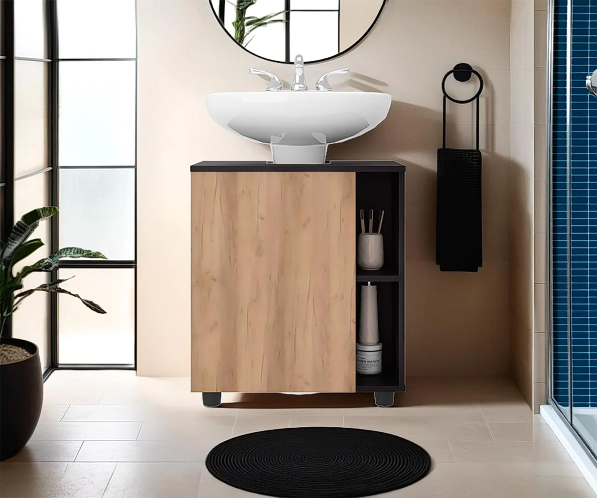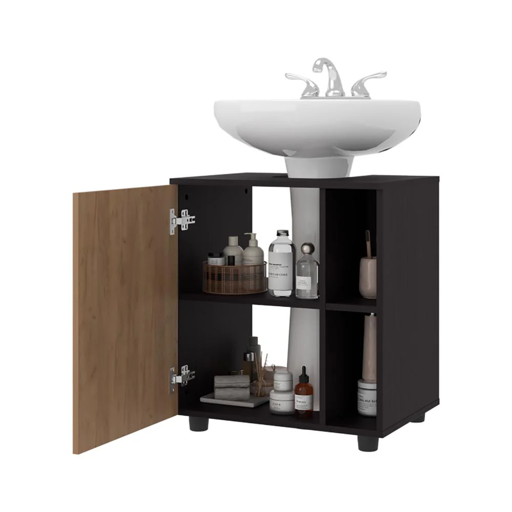 Mueble Lavamanos, de pesdestal moderno, 1 puerta abatible, con espacio para ubicar objetos decorativos y es de facil instalación