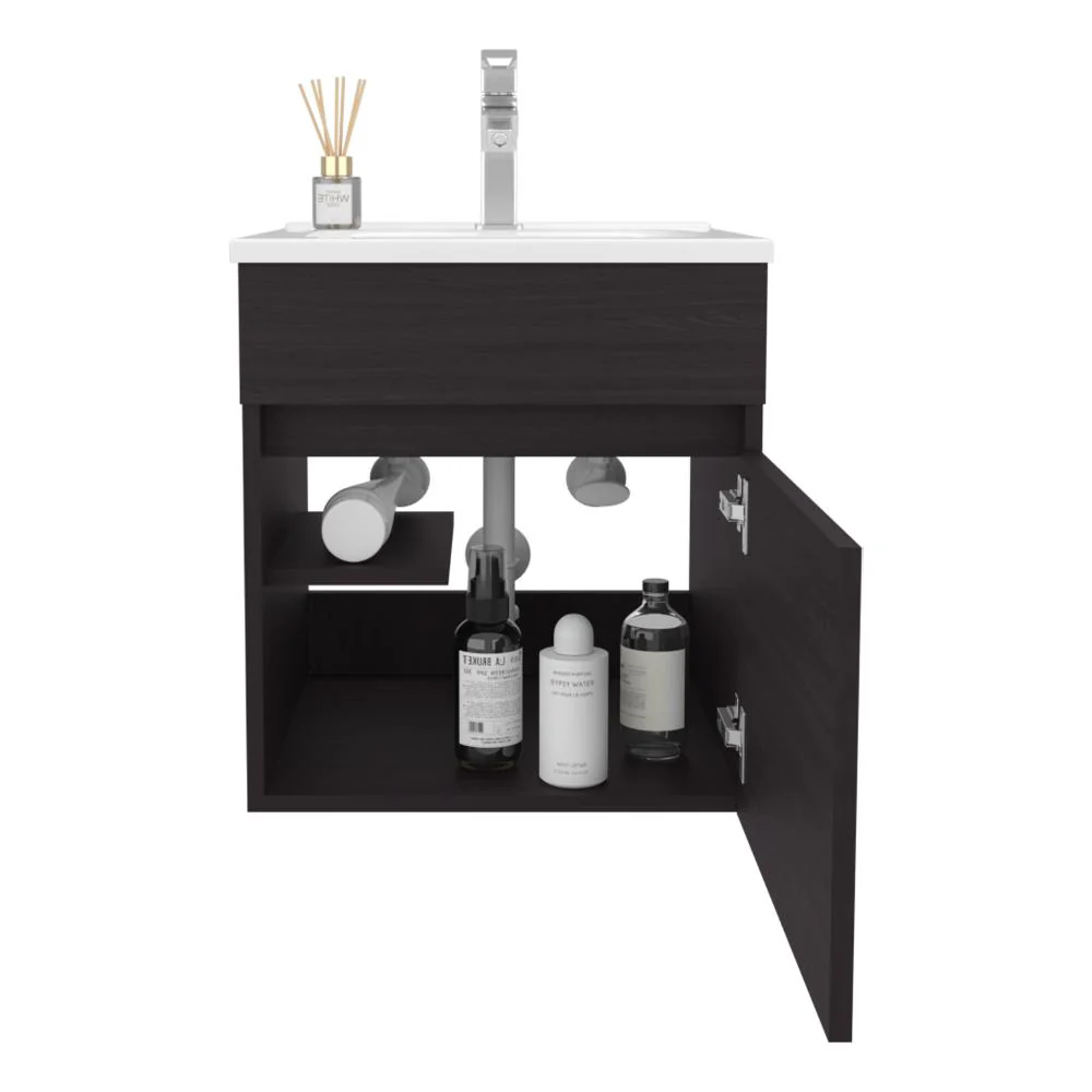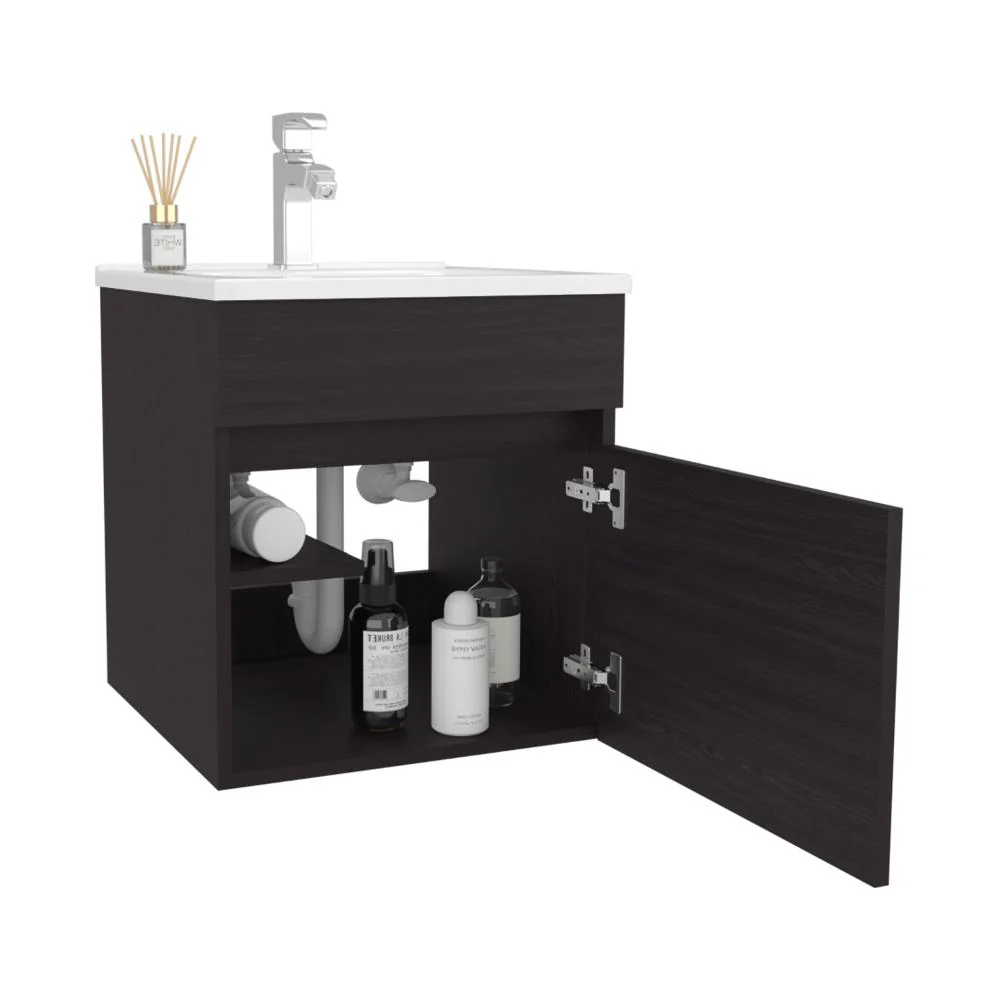 Mueble Lavamanos Con una puerta abatible, un entrepaño pequeño y con espacio para colocar objetos . incluye Lavamanos