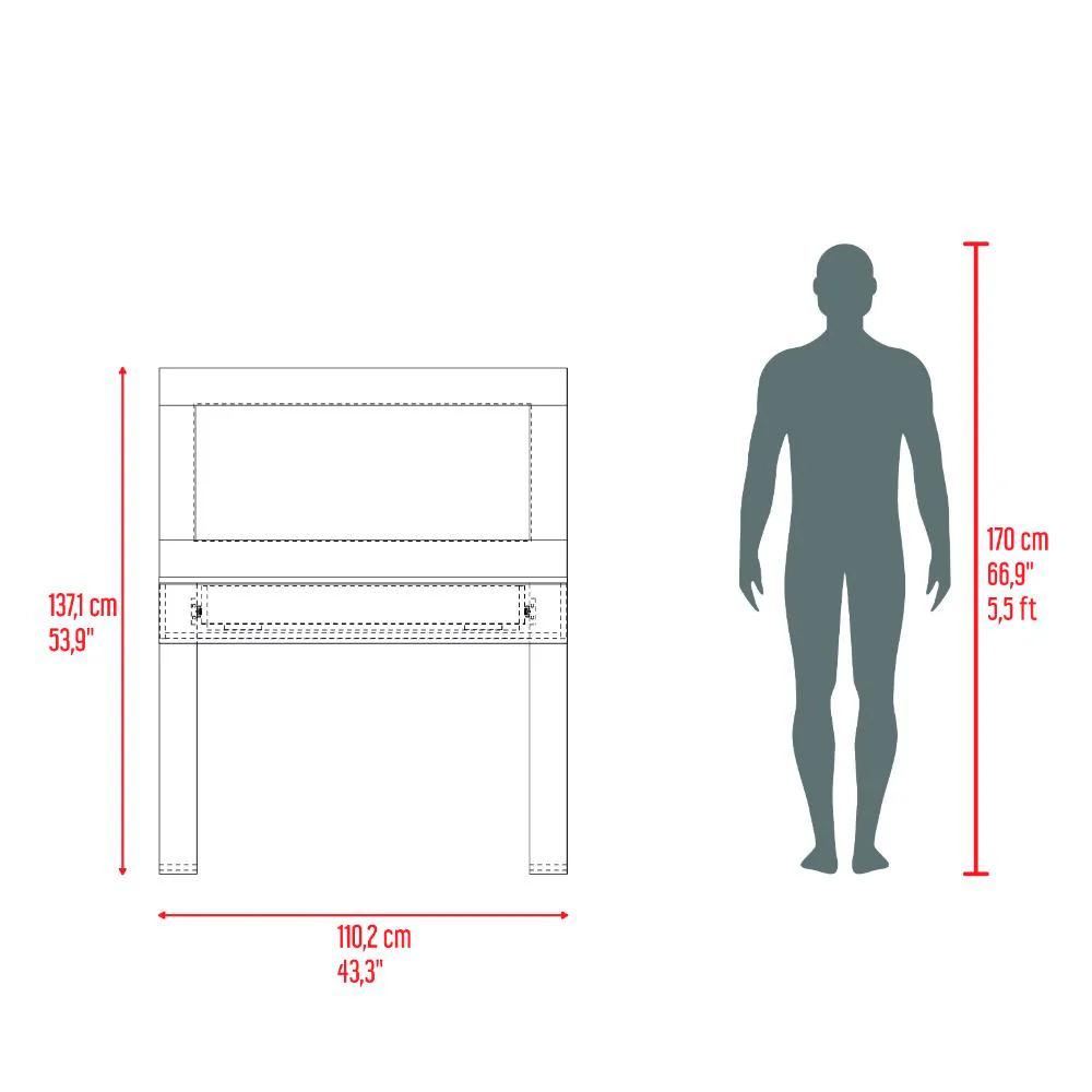 Elaborado en Madera aglomerada MDP, recubierta con láminas melamínicas de excelente calidad, en color Bardolino.
