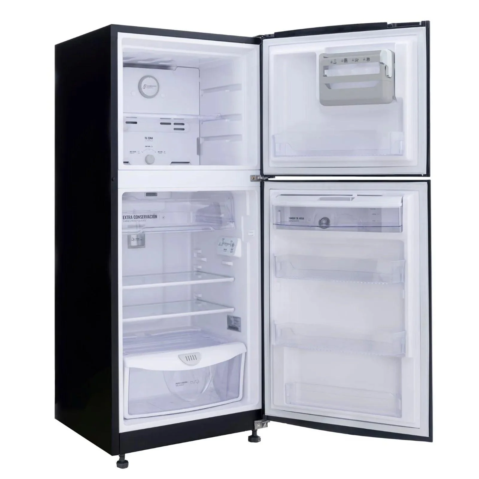 Nevera Haceb negra de 243 litros brutos. Diseñada para alargar la vida de tus alimentos, única con sistema de conservación Himalaya de 5 componentes: frío sectorizado y estable en cada zona, corrientes de frío óptimas, control de humedad en bandeja de frutas y verduras, y compartimiento extra-frío. Cuenta con iluminación tipo LED de gran alcance para mayor visual y menos sombras, amplio espacio interior con distribución modular, para que ordenar sea un placer y un novedoso fabricador de hielo que te entrega hielos grandes y fáciles de sacar, disfruta tus bebidas frías por más tiempo.