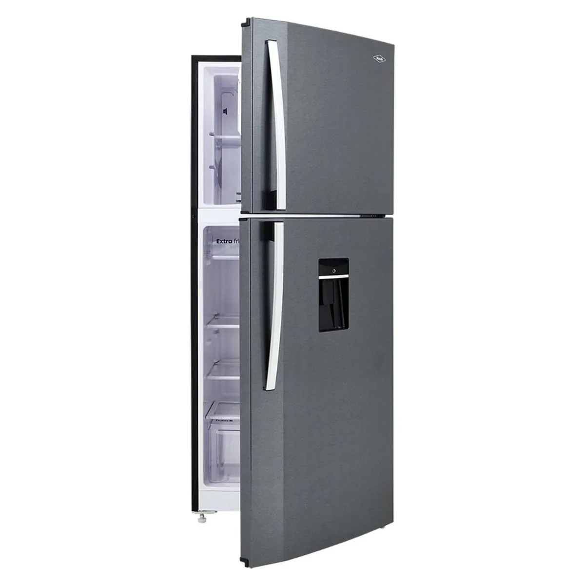 Nevera HACEB 404 litros brutos, color titanio, mayor eficiencia y bajo consumo energético con motor el inverter, silencioso y duradero, alarga la vida de los alimentos y consérvalos frescos con el sistema de conservación Haceb Himalaya, además, tendrás amplio espacio interior y altura variable. Disfruta de agua fría con el dispensador de agua de 3 litros y evita goteos con la válvula de cierre instantáneo. Servicio y respaldo únicos de Haceb ¡10 años de garantía en el compresor!