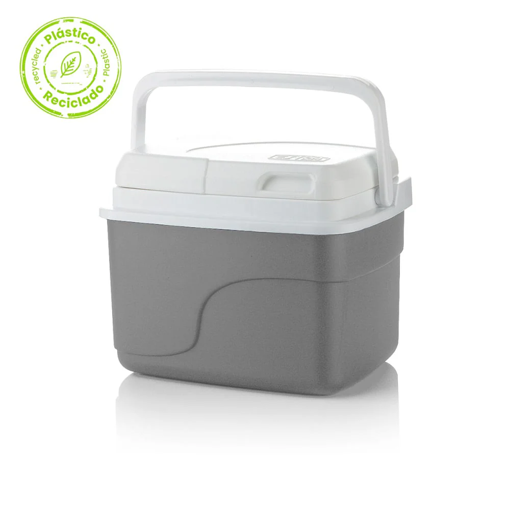 Estra te acompaña a disfrutar de tus reuniones familiares o paseos con amigos, manteniendo tus bebidas superfrescas y tus recetas en su estado ideal con la nevera portátil personal insulada 4.5 litros gris material recuperado .