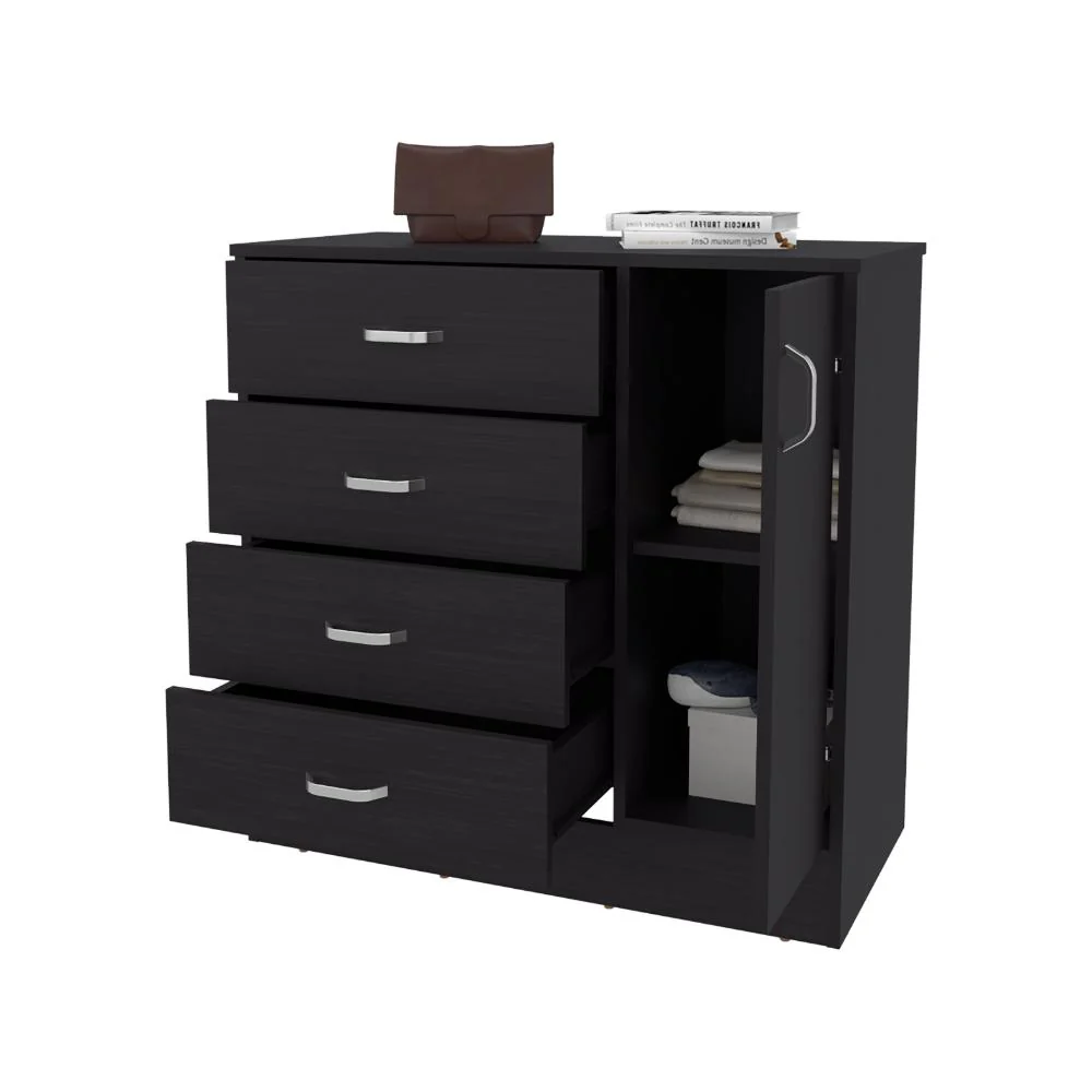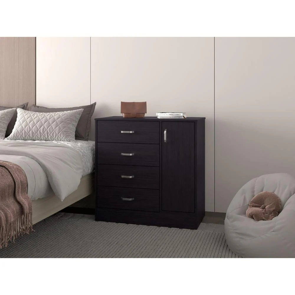 Elaborado en Madera aglomerada MDP, recubierta con láminas melamínicas de excelente calidad, en color Wengue