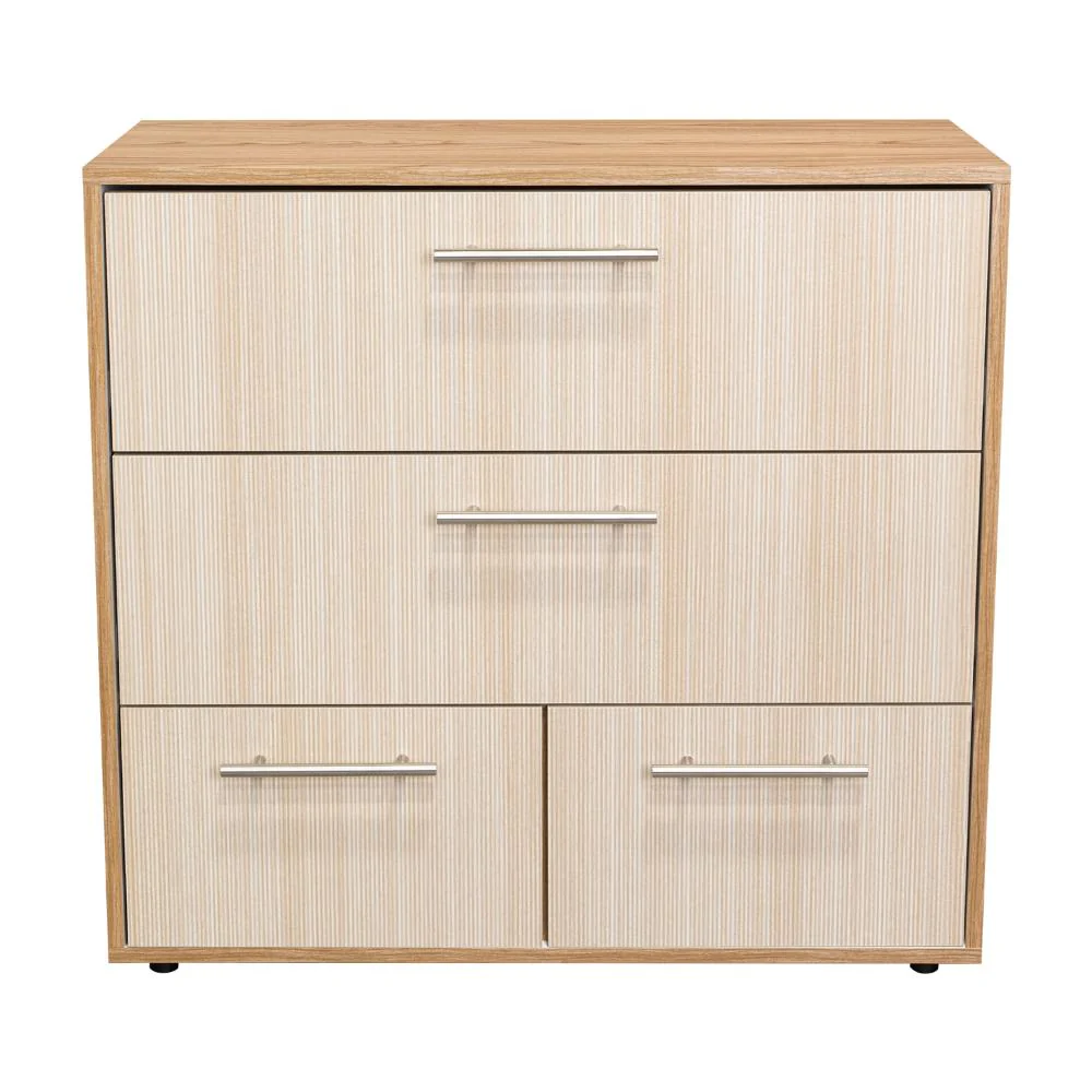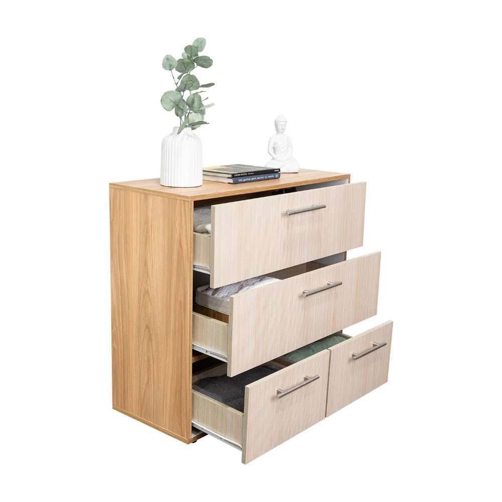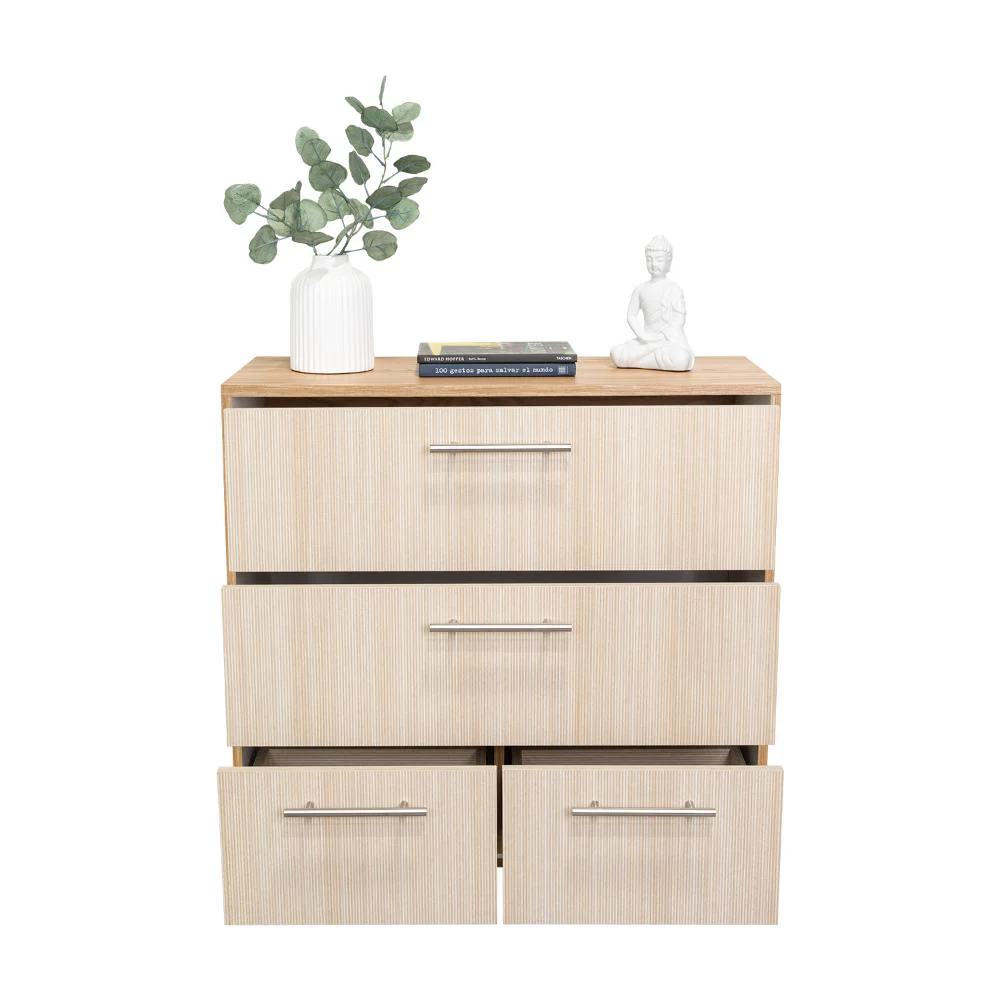 Elaborado en Madera aglomerada MDP, recubierta con láminas melamínicas de excelente calidad, en color Fresno Europeo y Blanco Duqueza.
