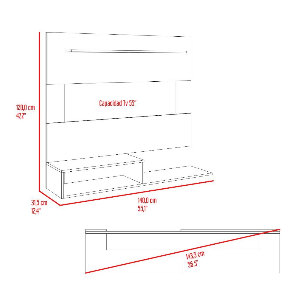 Panel de TV, con diseño moderno, múltiples entrepaños para ubicar objetos. Espacio de para tv 55″.