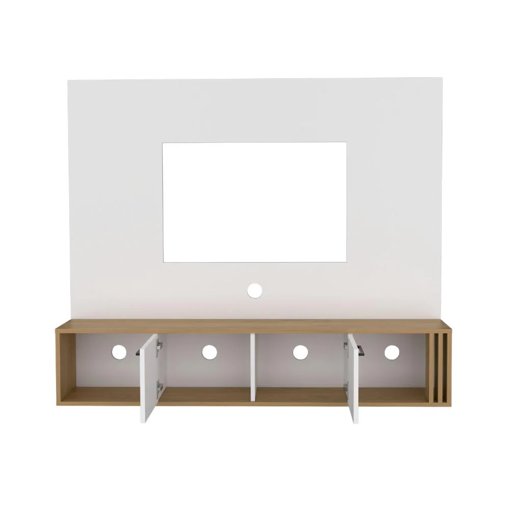 Panel de TV hasta 60» máximo, diseño moderno, múltiples entrepaños y superficies para ubicar objetos